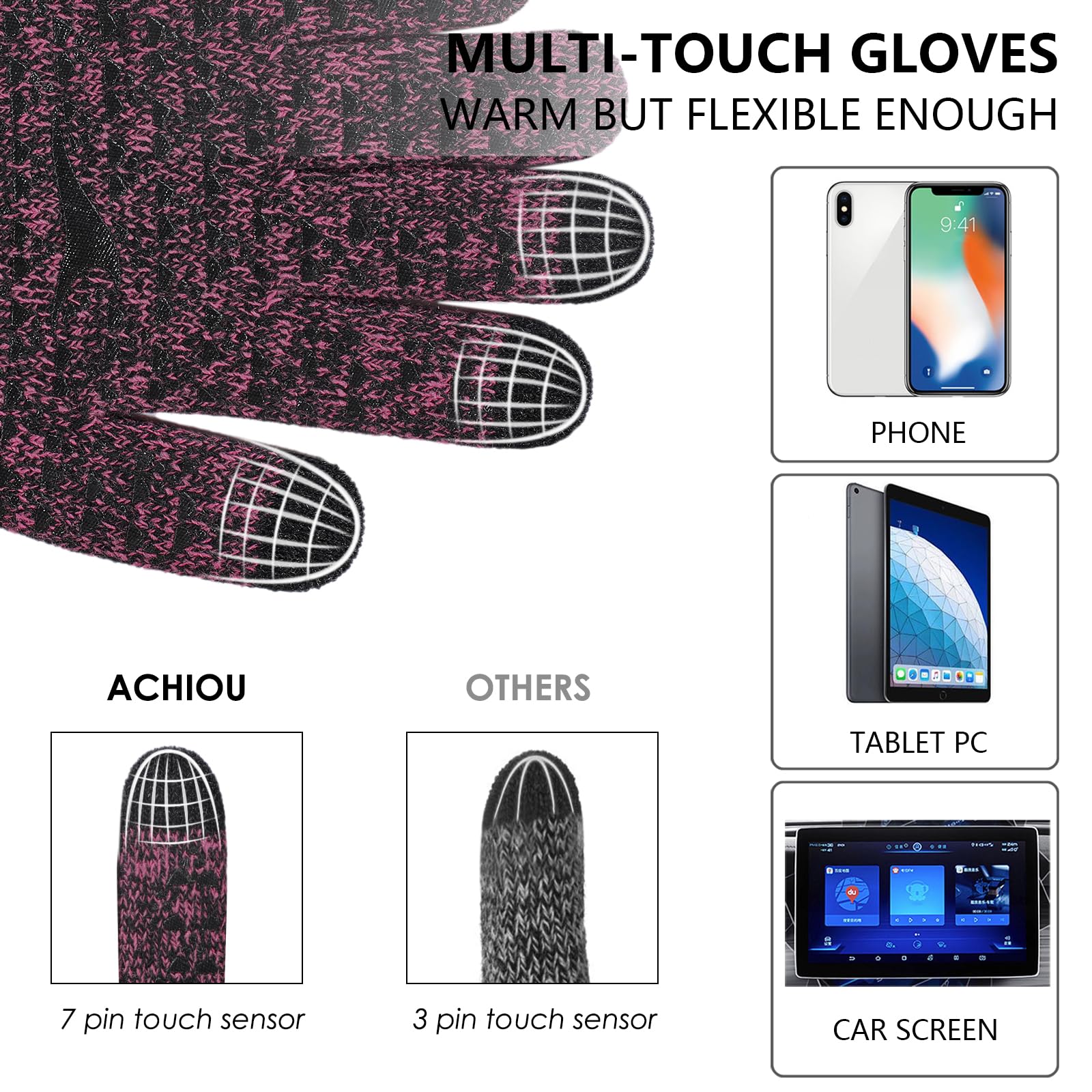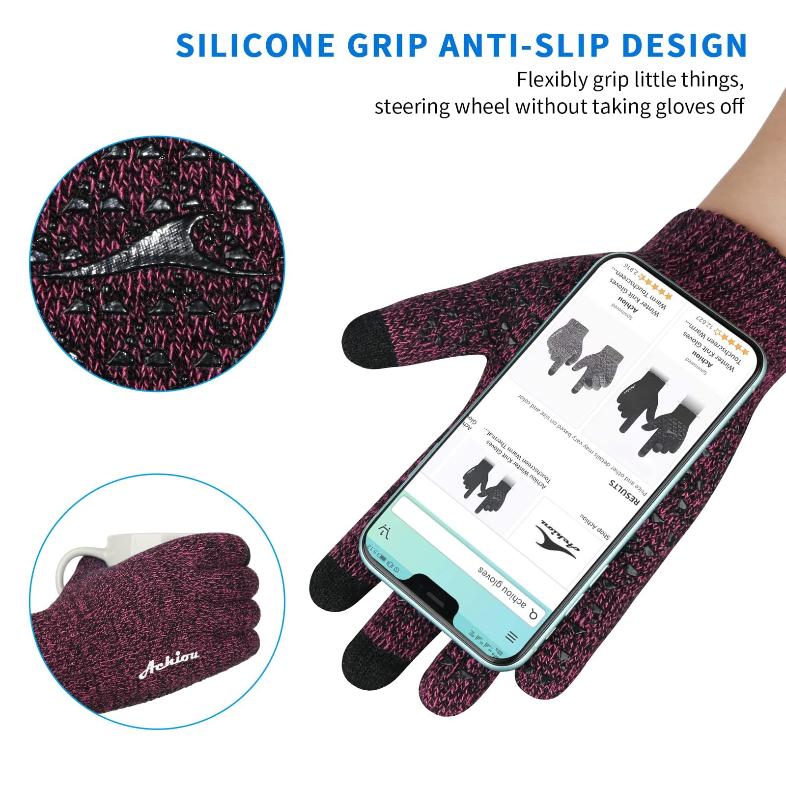 Convenient & Breathable Material – Living in the technology age, Achiou winter knit gloves let you use your phone without having to expose your hands. Breathable material allows the gloves to ventilate in order to decrease sweat accumulation