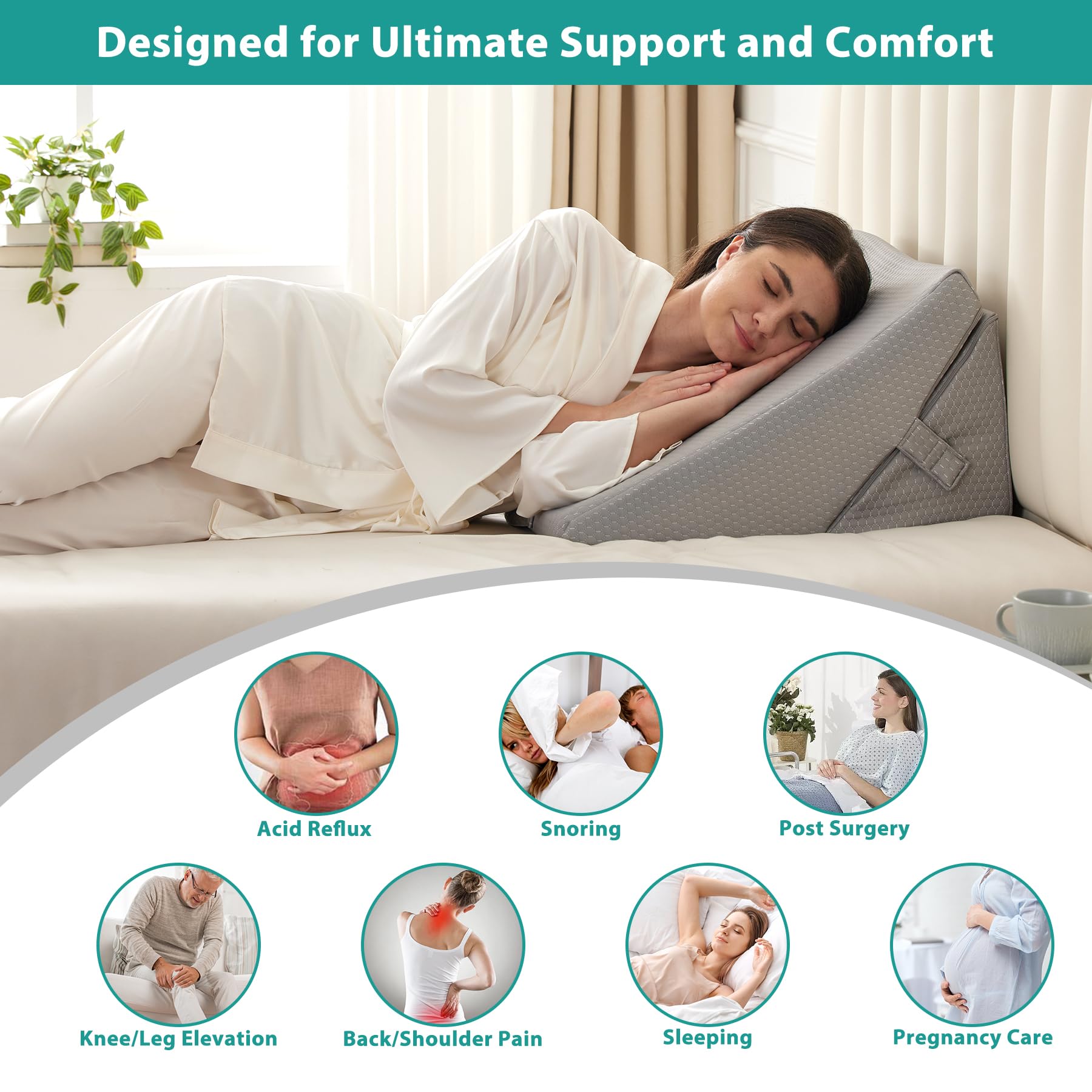 Enhanced Comfort & Pain Relief: Say goodbye to discomfort! Our wedge pillows are highly effective in addressing issues like acid reflux, snoring, back pain, and neck pain, while promoting proper blood circulation. Experience a more comfortable and pain-free sleep for ultimate rest and relaxation.