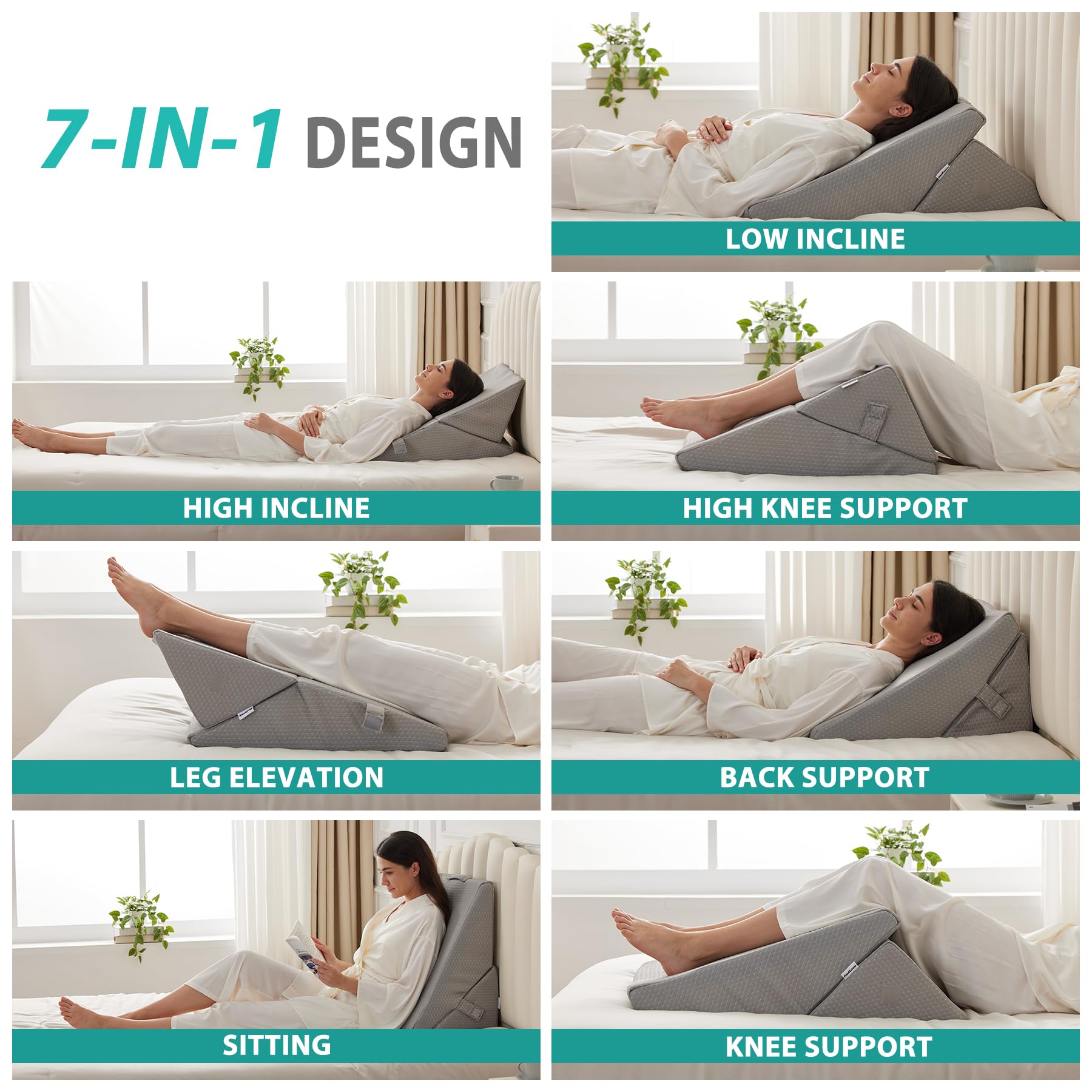 Ultimate Versatility: Experience unmatched versatility with Bedluxe wedge pillows set, offering 7-in-1 design for limitless possibilities. Effortlessly transform the pillows to cater to various body areas like the head, back, or legs. It provides firm comfort and is especially beneficial for post-surgery recovery.