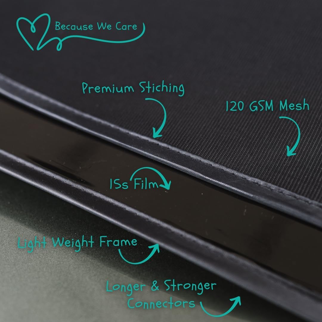 HIGH QUALITY: Made of 120 GSM, 15S Film & a unique clamp design, this is the most durable large automotive interior sun protection in the market.