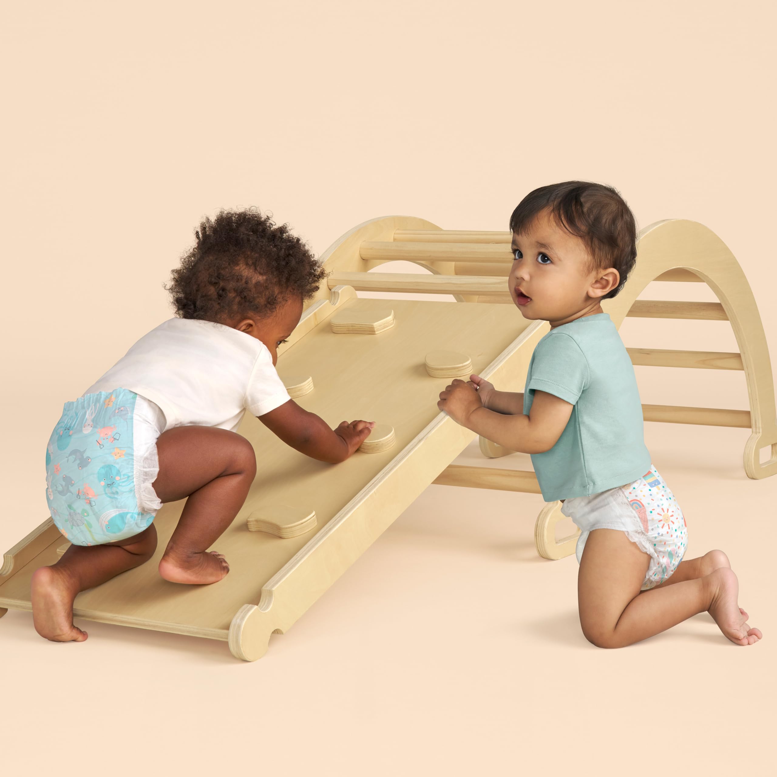 Designed to protect delicate skin, Honest Clean Conscious Diapers keep baby comfortable and dry through all the wiggles and wobbles! Our softest diaper yet delivers up to 100% leak protection with Comfort Dry Technology. The hypoallergenic, plant based inner liner, flexible stretch wings, super absorbent core, and channel technology provide a comfy, secure fit for all ages and stages. Because safety is top priority, these diapers are OEKO-TEX STANDARD 100 Certified, a 3rd party that tests for 350 harmful chemicals, and made with FSC Certified Fluff Pulp and other controlled materials. And for cuteness overload, each diaper features a super cute print!