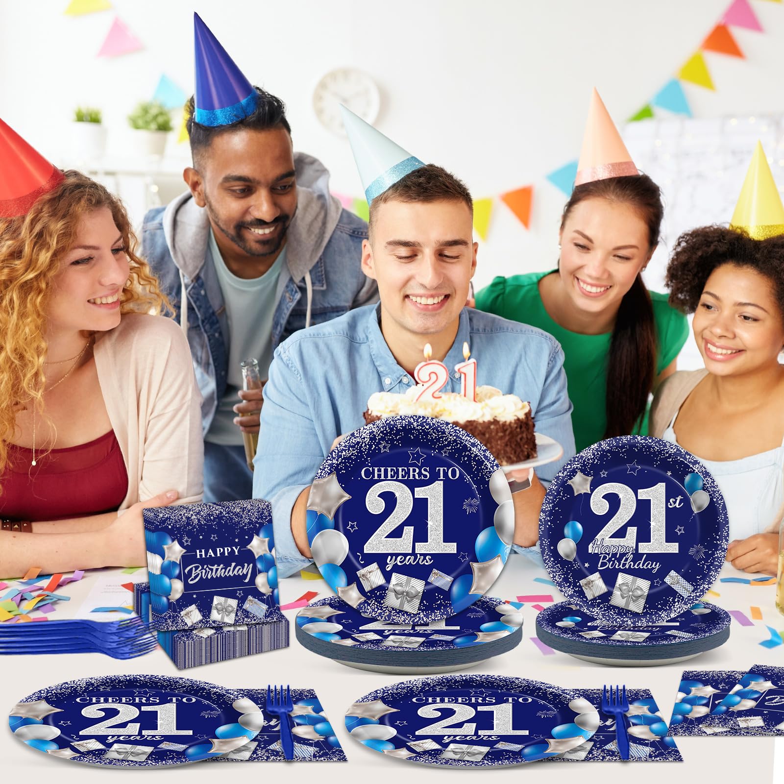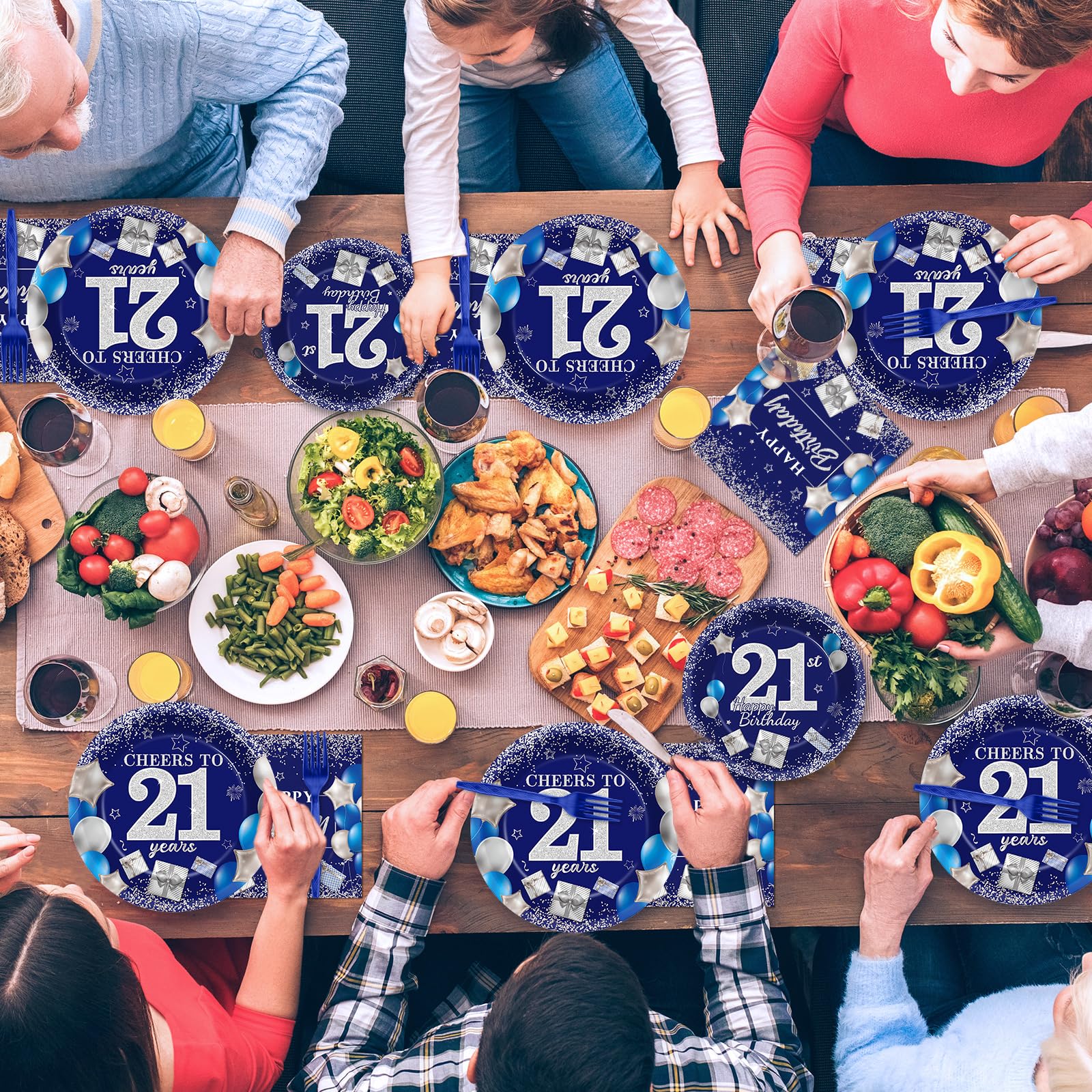 Package Includes: The pack contains 24 9 inch 21st birthday paper plates, 24 7 inch 21st birthday paper plates, 24 6.5 inch 21st birthday napkins, and 24 plastic forks, enough to serve 24 guests..