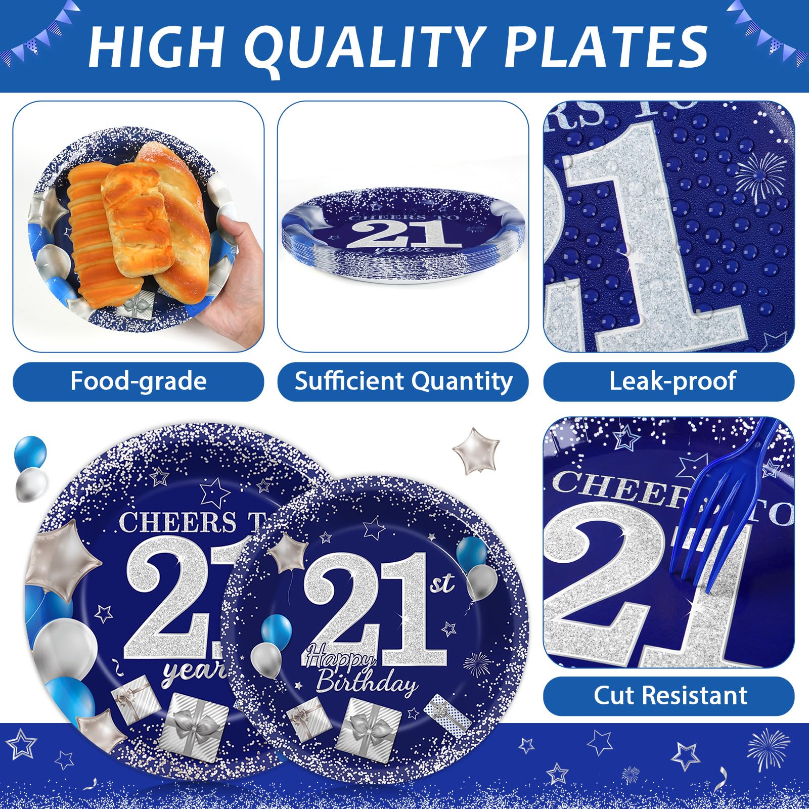 Premium Material: Our 21st birthday decorations set are made of quality paper, no smell and well-printed, these 21st birthday plates are sturdy and 21 years old birthday napkins are soft and absorbent.