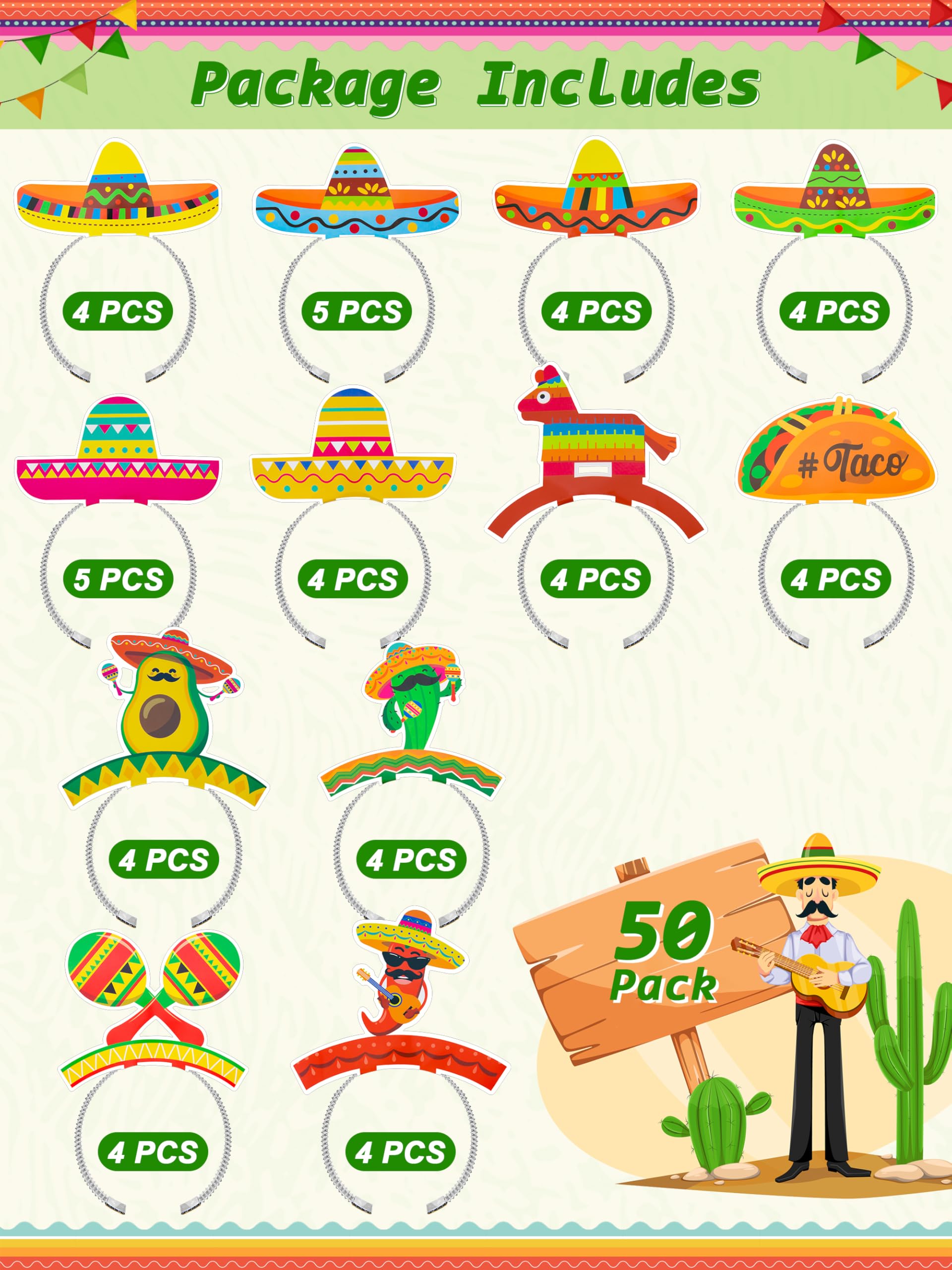 You Will Get - 50 pcs Cinco de Mayo headbands in a variety of designs