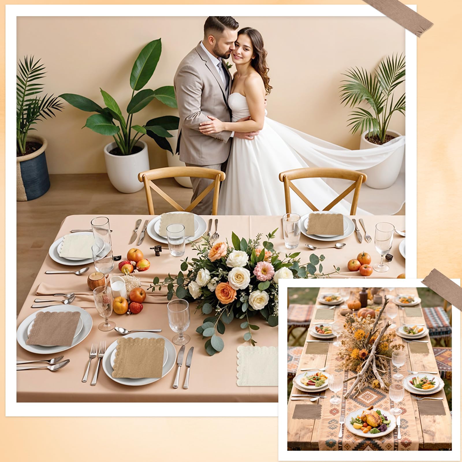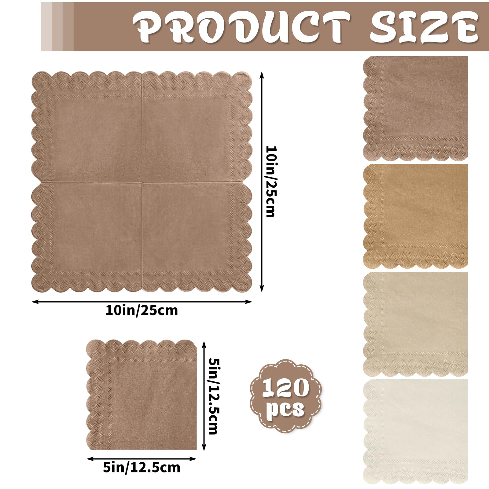 Brown Scalloped Napkins Size: Boho bridal shower napkins measure approximately 12.5 x 12.5 cm/ 5 x 5 inches folded and approximately 25 x 25 cm/10 x 10 inches unfolded. Brown dinner napkins are great for table decoration and daily cleaning