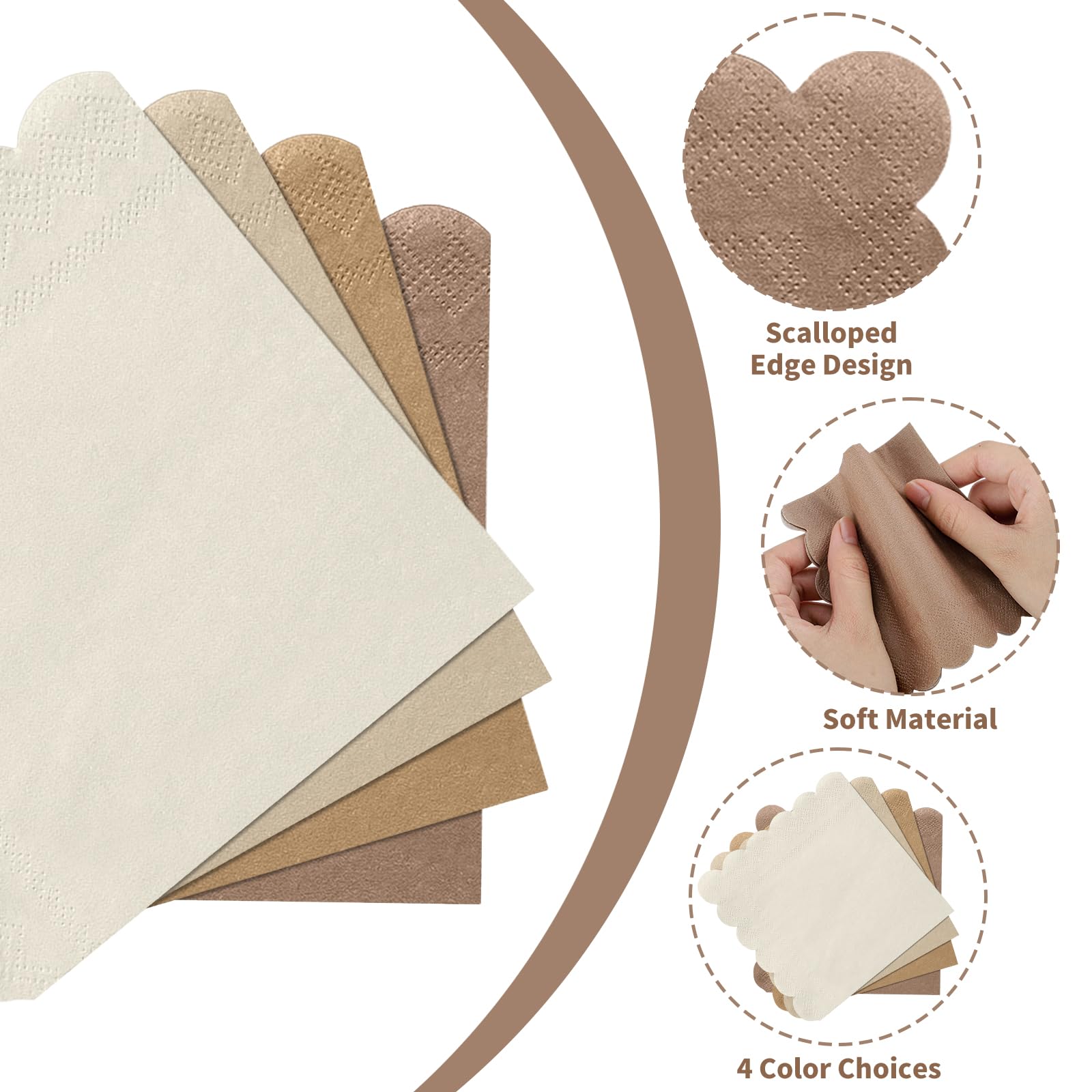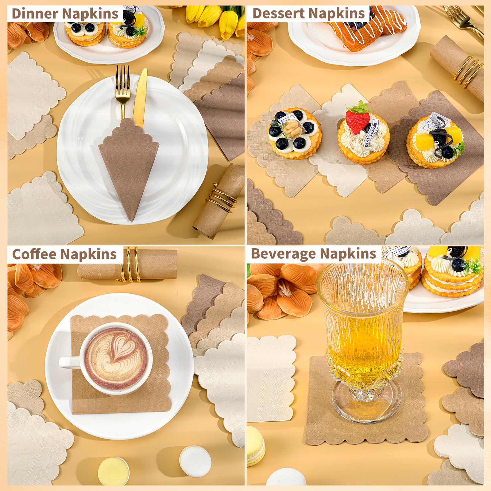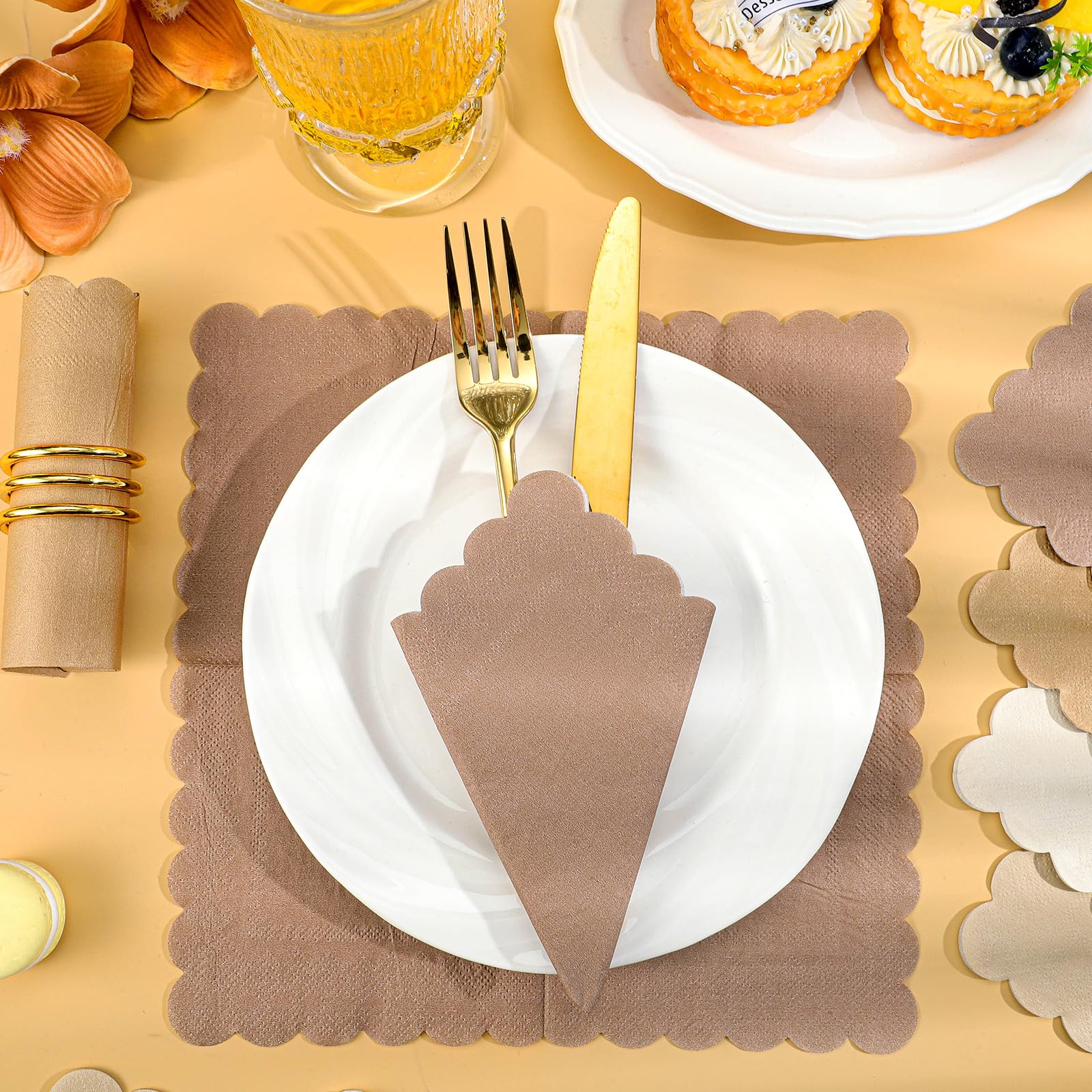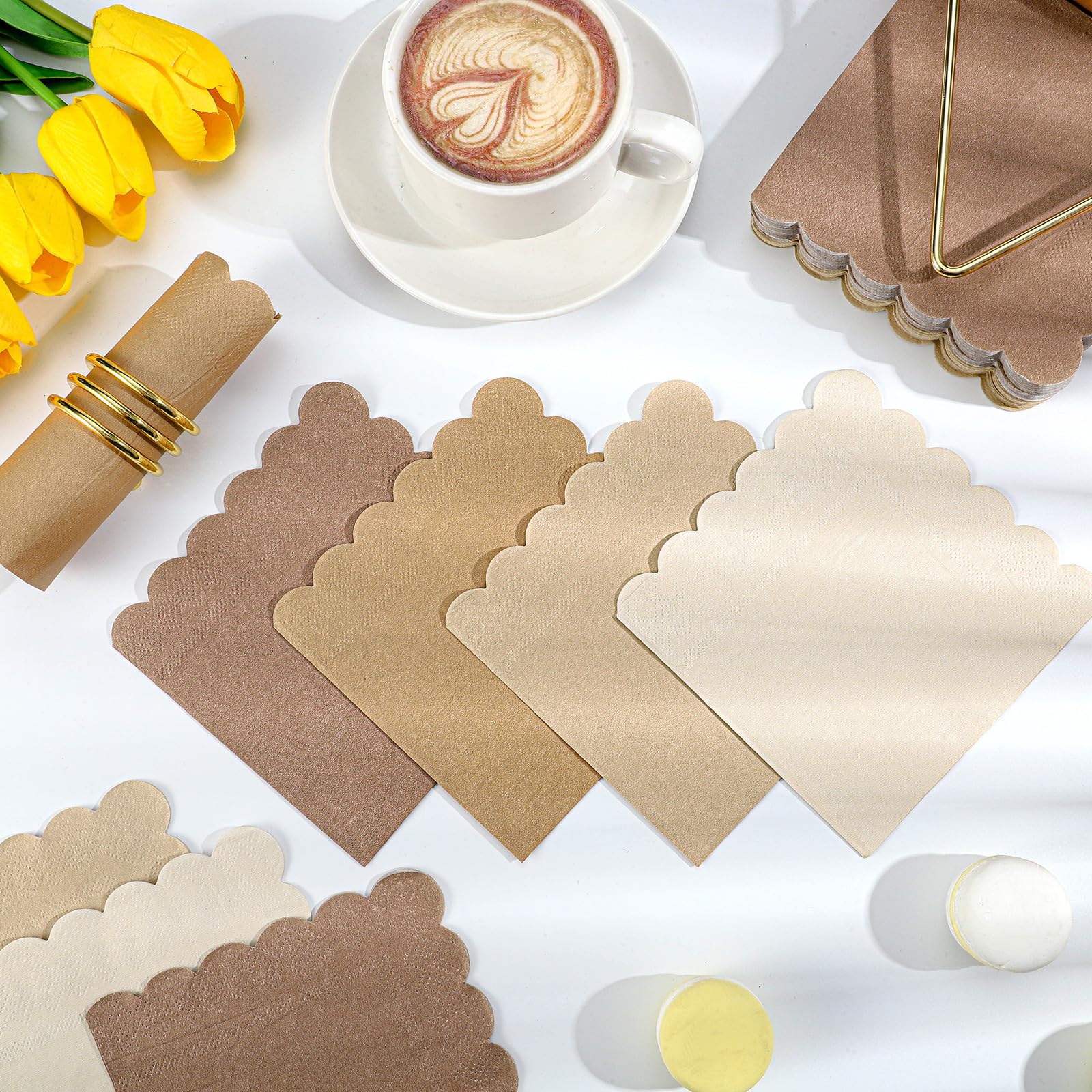 Gradient Brown Color Design: Disposable cocktail napkins are available in 4 different brown colors, from dark to light. The classic scalloped rim enhances elegance of dinner napkins, making it a better decoration for party tables