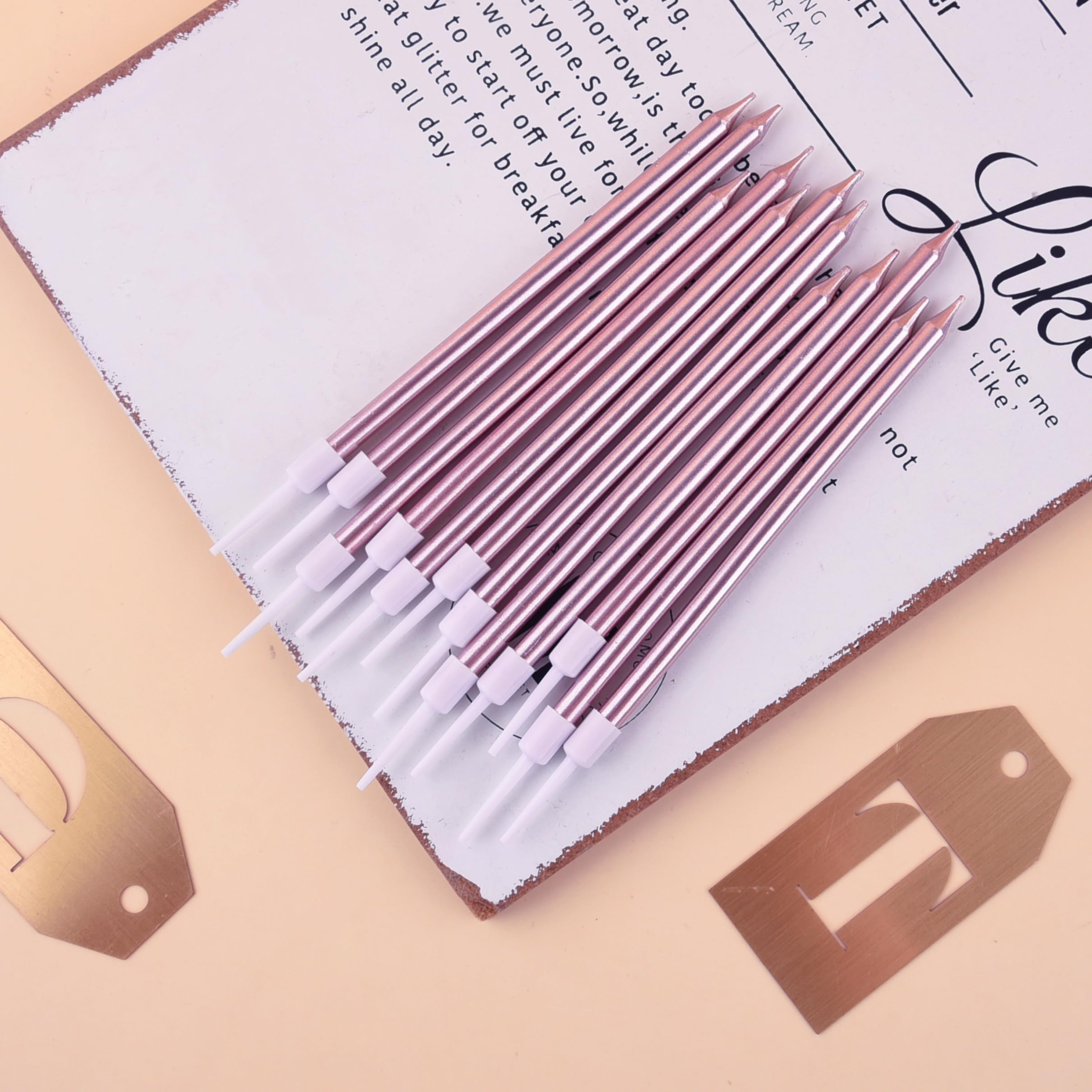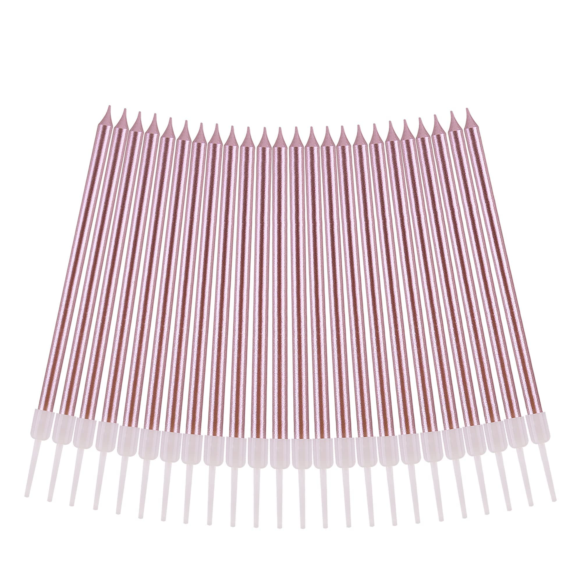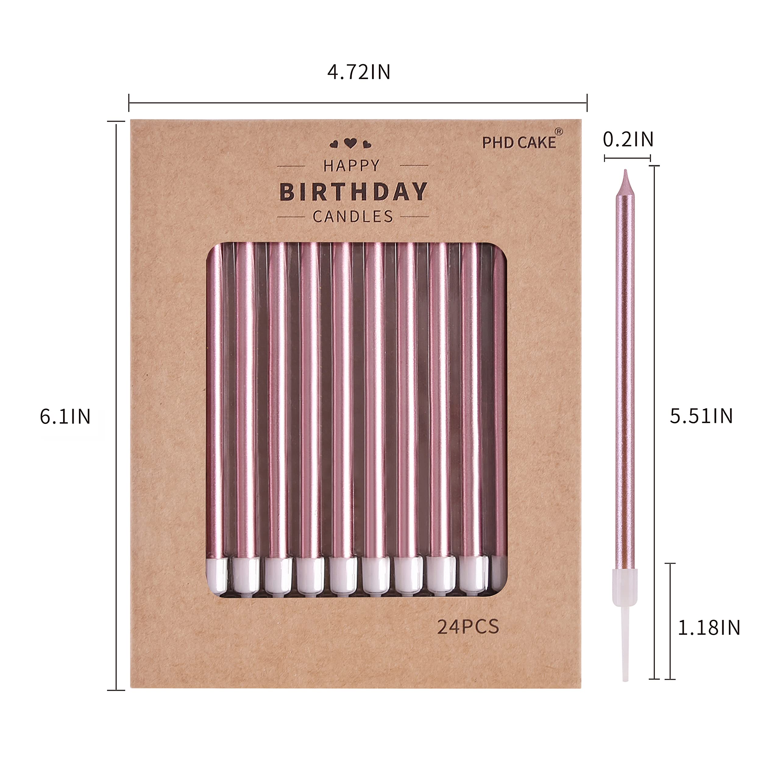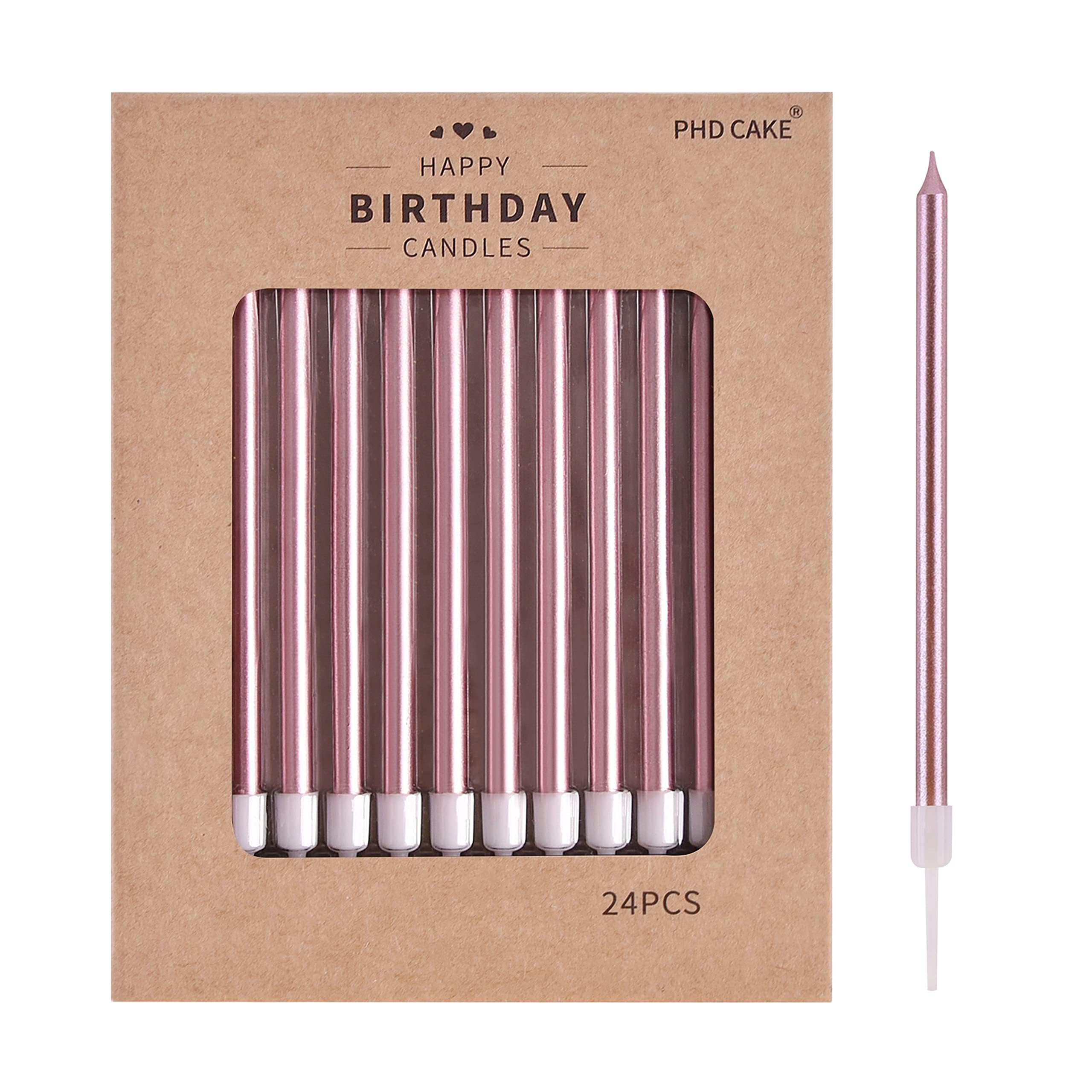 New: 24 long, thin & tapered elegant Rose Gold cake candles designed to make your cake and birthday a unique and truly inspiring event.