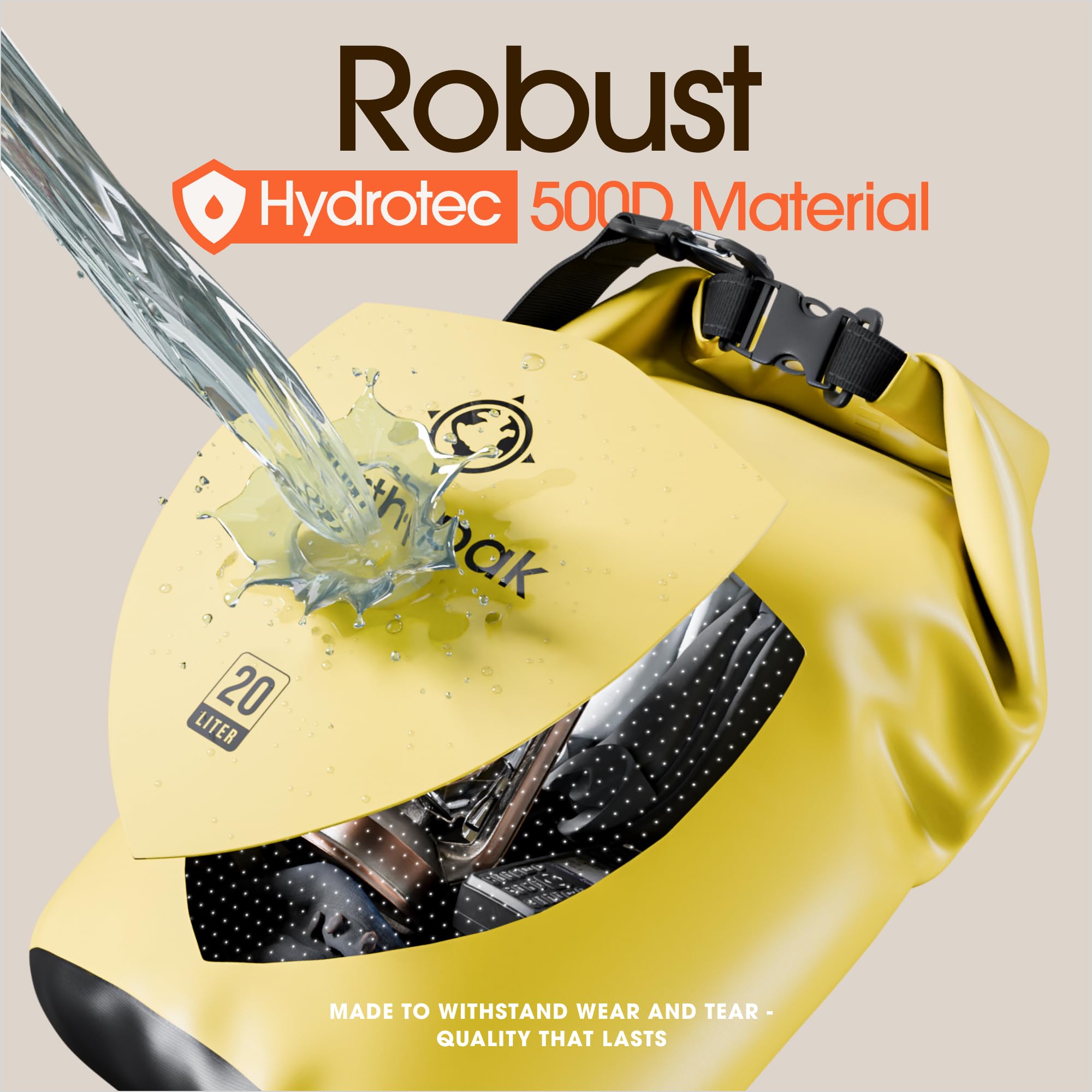 Keep Your Items Dry and Protected: Protect Your Valuables with our 5L, 10L, 20L, 30L, 40L, or 55L Dry Bags! Just toss your gear inside your water bag, roll it down, and you’re good to go on your next adventure.