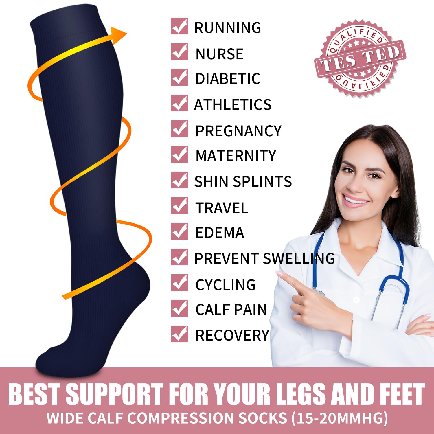 6 PACK OF COMPRESSION SOCKS - You no longer have to settle.Our design of comfort and style comes at a very affordable price in comparison.There are available in different fabrics and colors.They are discreet and look like the ordinary socks you have already wear to work.Our socks are universally suitable for all work.Whether you are an athlete,teacher,flight,crew,receptionist,office,worker,pregnant, elderly ,they'll work for you as you work for yourself and your family.