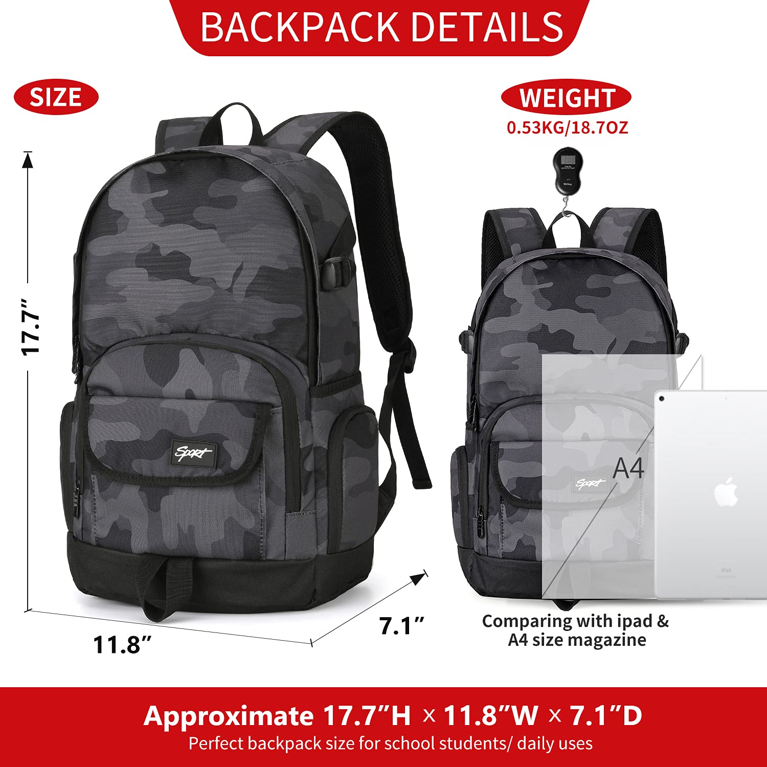 Description Flexible and ample storage space with scientific and reasonable layout design in Ricky-H’s conveniently portable bag makes getting out the door in the morning much easier. Multipockets layout allows small items (eg. Phone, pens, keys, chargers, power bank, sunglasses, ect.) and big items (eg. Laptop, A4 binders, textbooks, notebook, lunch box, sweater, towel, ect.) being organized neatly. -Suitable Occasion: School, Travel, Camping, Hiking, Gym, Office, Gift, Versatile. Whether to cater your day-to-day organizing basis or your "extra-curricular" uses, our backpack is versatile enough for many use, to be a book bag during the week and a travel backpack on weekends. Great choice as school bookbag or daypack, overnight backpack. Or even as diaper bag. -Applicable People: Men, Women; College/University Campus Students, High school, Middle school, Elementary, Primary school boys & girls; Parents, ect.)-Comfort with featuring ergonomic designed adjustable padded reinforced shoulder straps, makes the backpack all day use as a breeze. -High-quality, strong, long lasting nylon fabric builds our sturdy and solid backpack with great performance on water-resistance, anti- striking and anti-scratching. -Twin metal zippers with fabric flaps over to keep water out of the backpack and last much longer than plastic ones. Easy at opening and closing the backpack.Double stitching at stress points adds valuable security to seams, handles, and straps, enhancing the durability. And additional top handle provides extra help while lifting or moving the backpack. *Notes:1. Differences of 0.5-1 inch may occur due to manual measurement. 2.Item color displayed in photos may vary slightly from the actual product due to monitor color settings.
