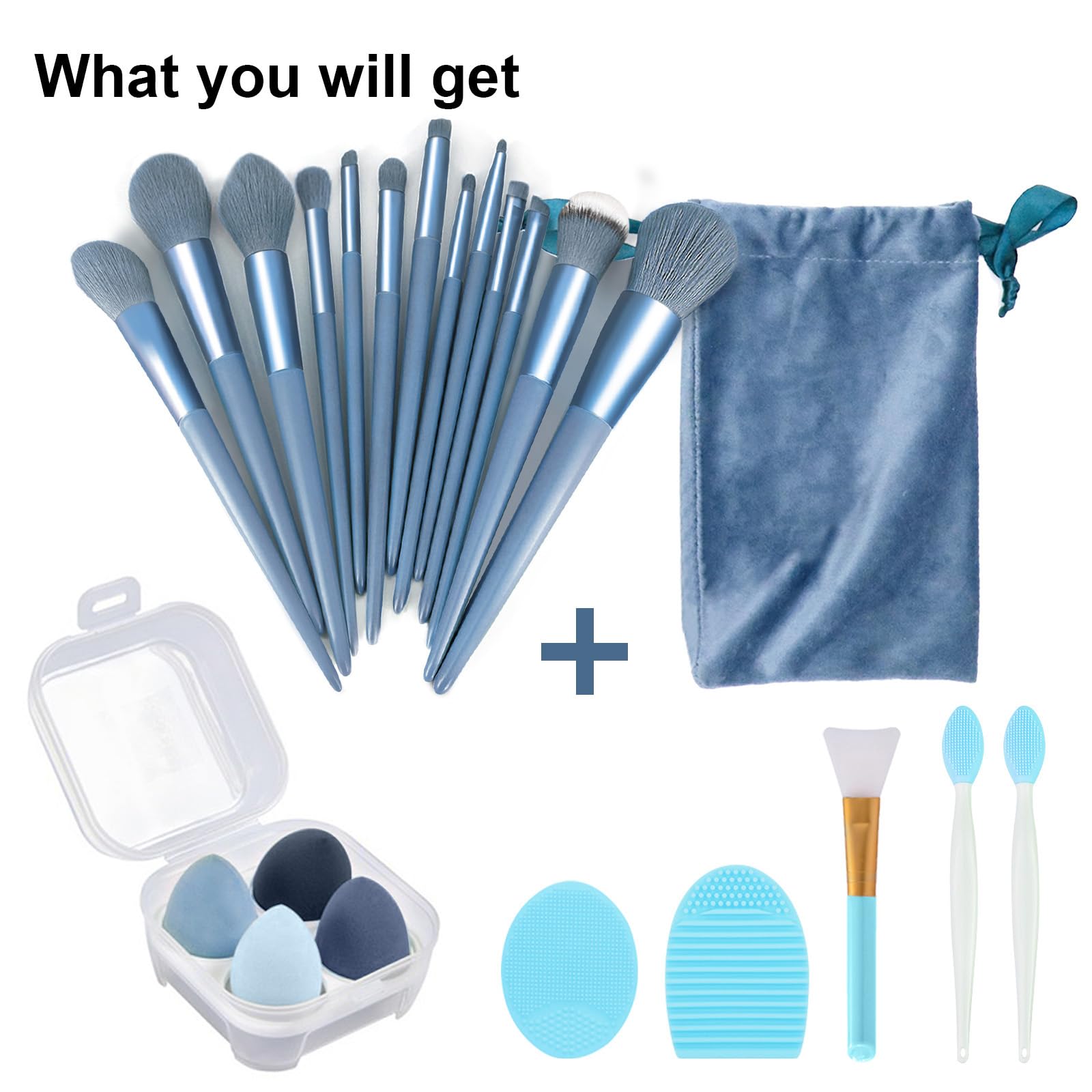 Comprehensive Makeup Brush Set : This set includes 13 makeup brushes and a storage bag. In addition, we also prepare a silicone face-pack brush, a sponge egg set, and two silicone lip brush, a brush cleaning egg, and a silicone facial cleansing brush. This set is a good choice for beauty lovers.