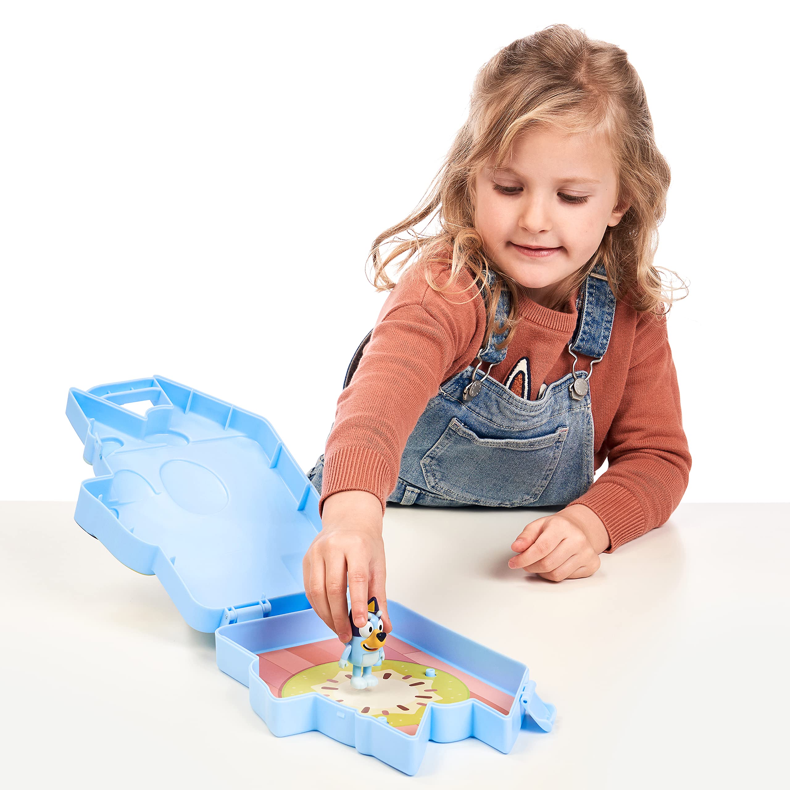 Play on the go and take Bluey and her friends anywhere in Bluey's Deluxe Play & Go Playset!