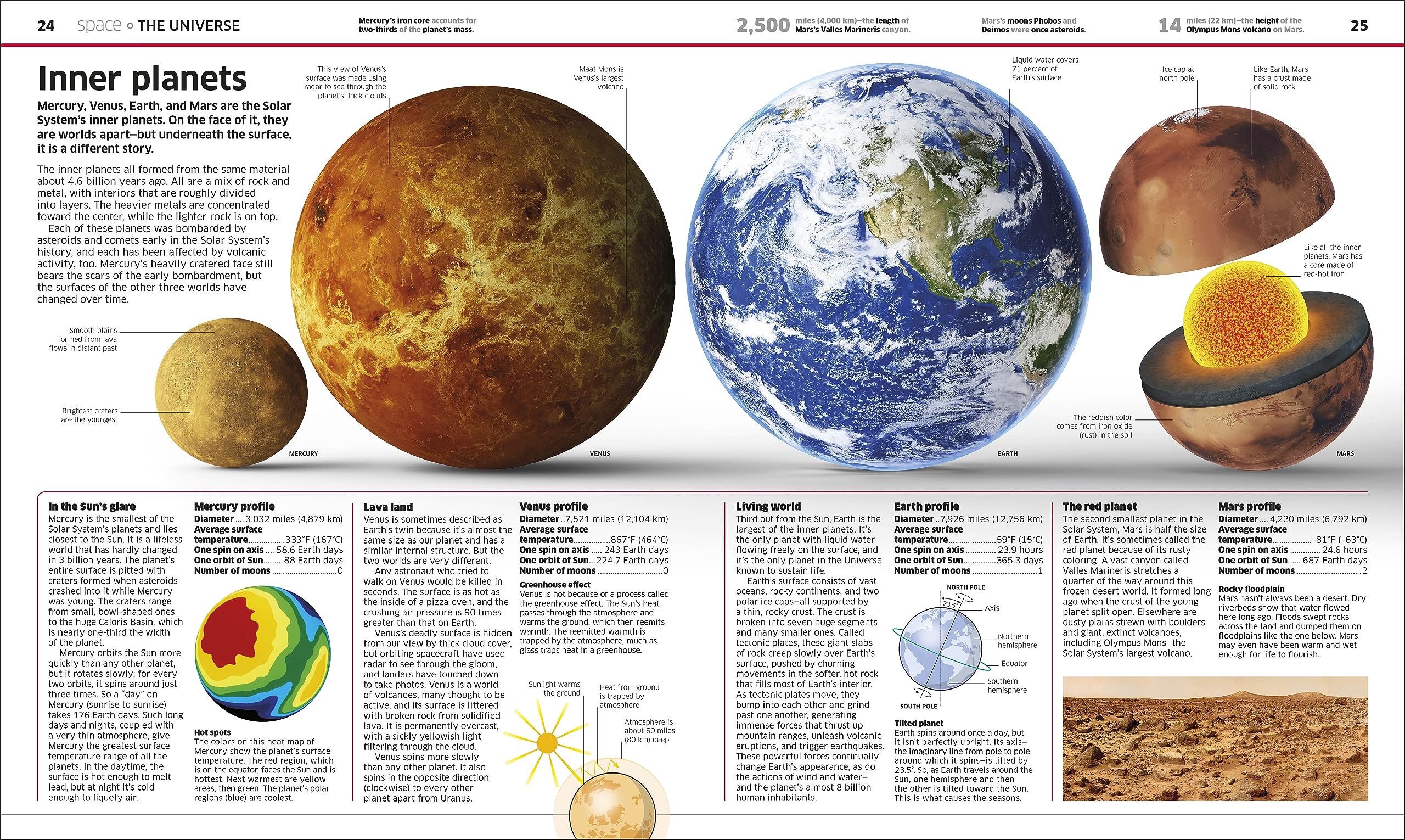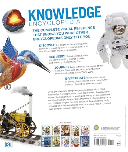 Change the way you see the world, with a groundbreaking visual approach to the wonders of our planet, in this fully updated edition. Explore the universe, from the inside of an atom to black holes, then discover the explosive science behind a fireworks display. This fully updated third edition of Knowledge Encyclopedia will continue to fascinate young readers with its microscopic detail and amazing facts on a huge range of topics. Children aged 9+ will find themselves totally absorbed in complex subjects, made clear through engaging explanations, intricate illustrations, vivid photographs, and striking 3D images. From Viking raiders and Samurai warriors to robotics and chemical reactions, amazing animals, the human body, the marvels of history, and more are visualized in incredible detail, inside and out, providing a mind-blowing introduction to every aspect of human knowledge. This all-encompassing encyclopedia for kids offers: - A whole collection of facts, charts, timelines, and illustrations that cover a vast range of topics. - Complex subjects that are explained using amazingly detailed CGIs that entice young readers to dive in and explore. - A fully updated edition, including all the latest developments in science, technology, space and geography. - A visual approach using illustrations, photographs and extremely detailed 3D CGI images. Children can explore the world as they’ve never seen it before, looking at what makes the human brain so special and finding out how the body’s cells make energy. Journey through history in this visual encyclopedia, from the earliest life forms right up to our world today. More in the Series Knowledge Encyclopedia: The World as You’ve Never Seen it Before is part of DK’s visual and informative Knowledge Encyclopedia series. Complete the collection and dive into the deep with Knowledge Encyclopedia Ocean!, take a trip to the solar system with Knowledge Encyclopedia Space! and travel back to prehistoric times with Knowledge Encyclopedia Dinosaur!
