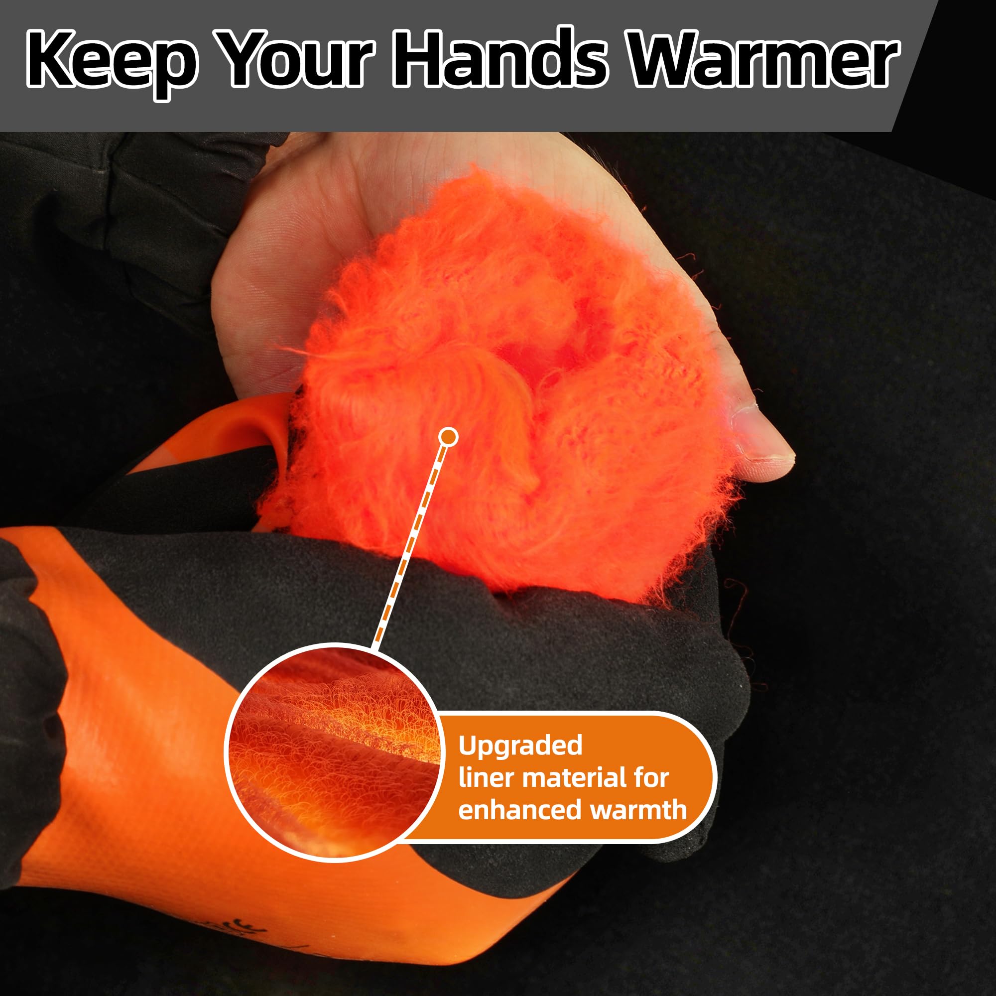 Multi-Purpose - High-viz orange coloring lets you be seen and be safe. These warm work gloves are perfect for a variety of indoor and outdoor work such as grouting or wet saw, snow removal/salting, working with the water troughs, cleaning snow off, driving, gardening, snowball fights, skiing, outdoor chores, etc.