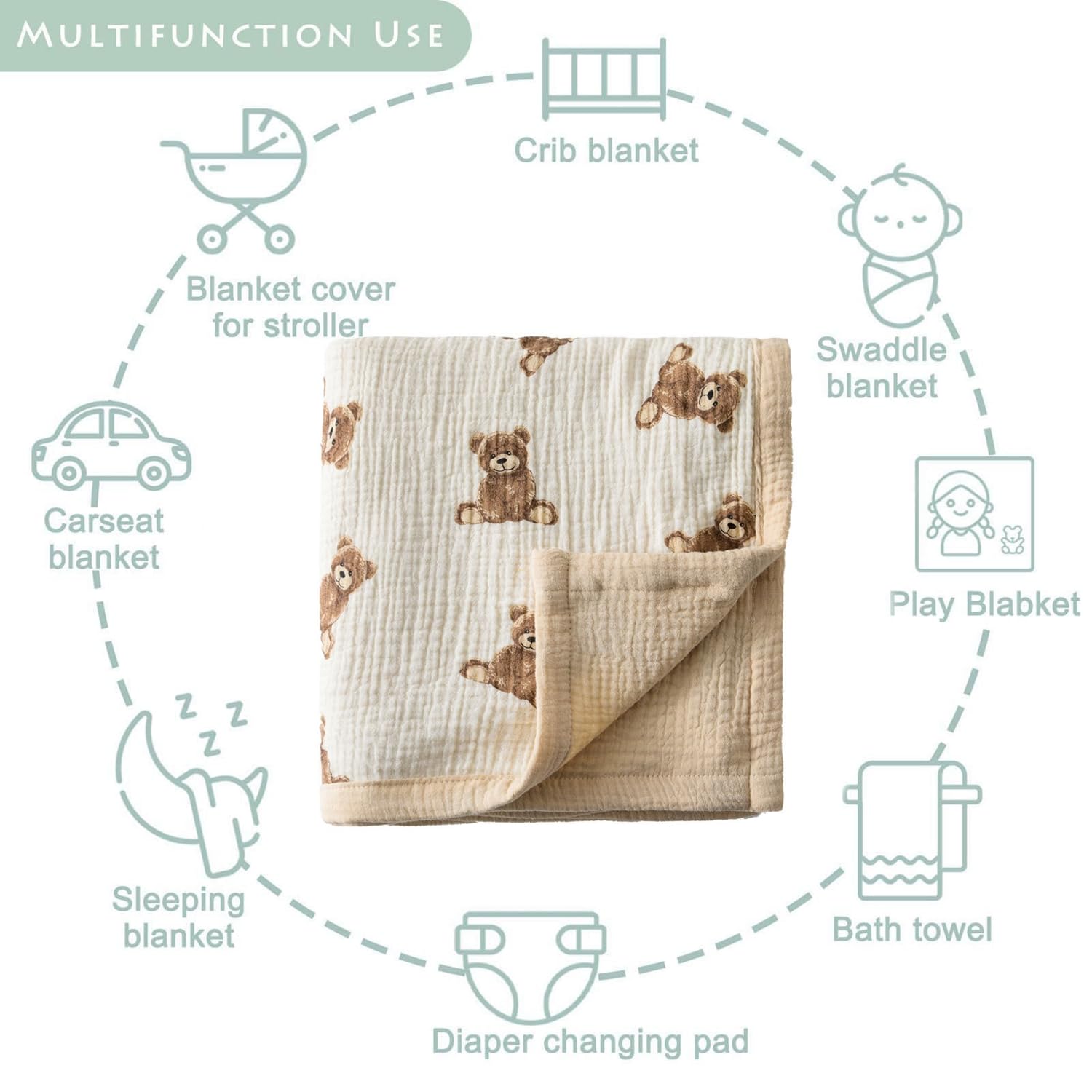 Soft & Comfortable unisex baby blanket : Little Jump double-sided baby blanket is made of 100% muslin cotton that is soft and warm covering your baby as if they were in their mother's bosom. Its soft, skin-friendly, breathable features fit the mother's choice very well.
