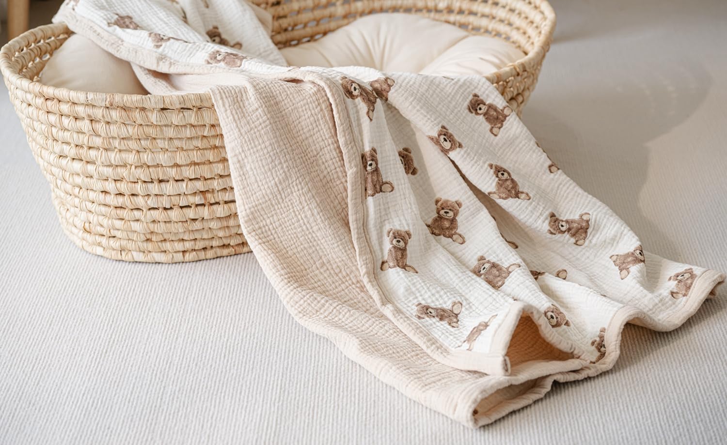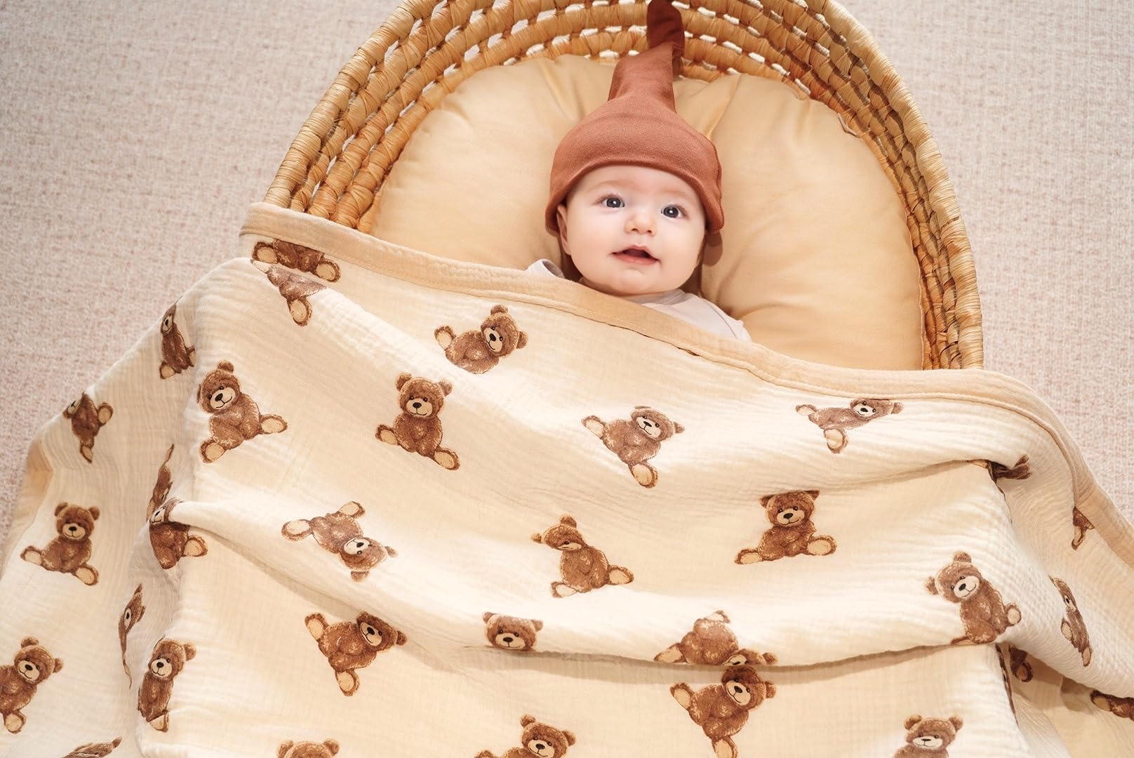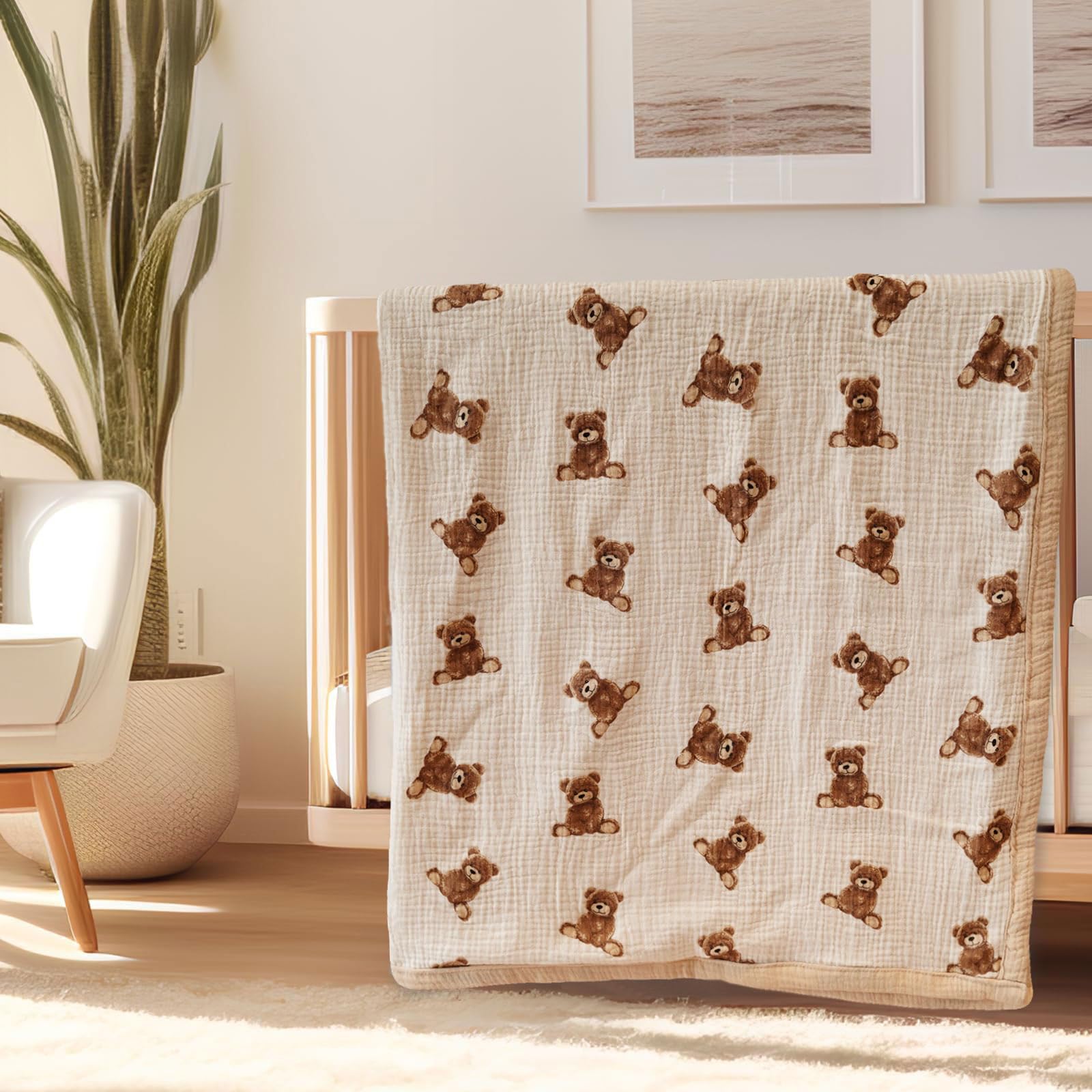 Adorable Design: Whether it's the timeless appeal of Teddy Bears or the comforting hues of solid kakhi, our crib blankets combine functionality with aesthetic charm. It’s pretty light weight but since there’s multiple layers of fabric, it provides plenty of warmth and comfort. Children will love to even carry it around the house and play with it.