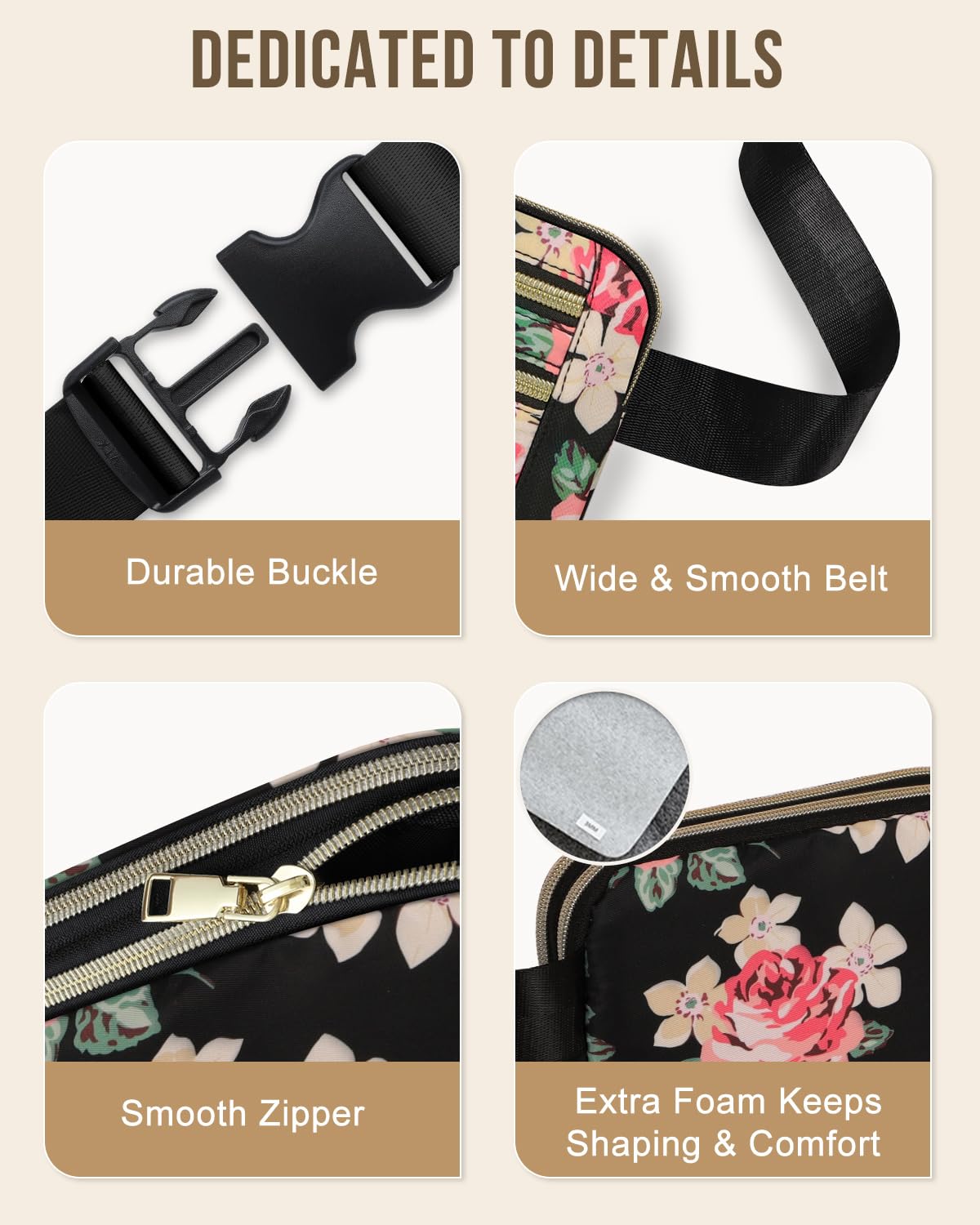 Extra Foam for Shape Retention and Comfort: Many fanny pack crossbody on the market are made from stitched nylon that often wrinkles and loses its shape, and keys can rub against you through the thin fabric. To address this, we've added extra foam to the back of our fashion waist packs, ensuring it retain its shape even when empty. This also keeps the contents separated to prevent friction with your skin