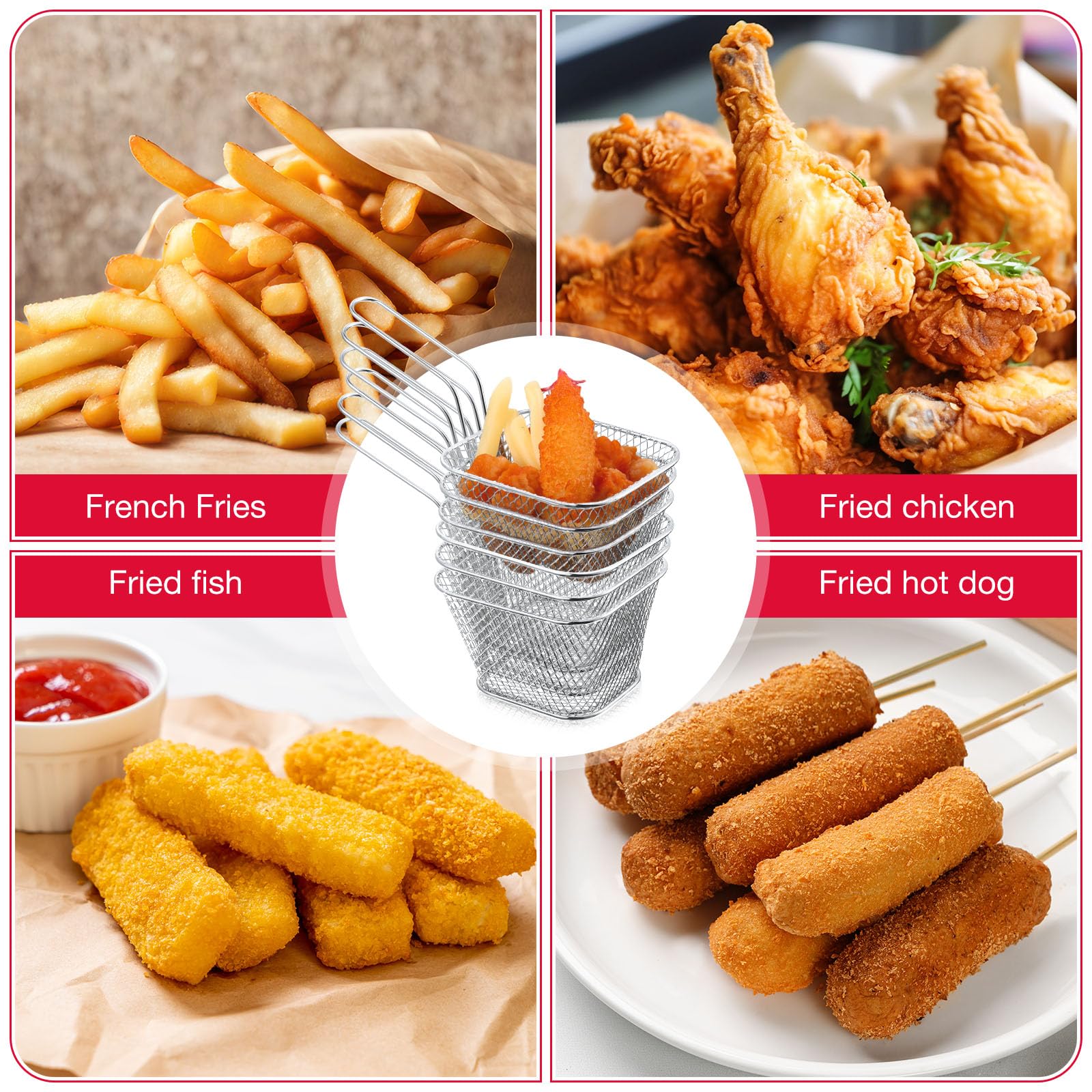Rustproof with Fine Workmanship: our french fries holders are made of quality stainless steel, strong and sturdy enough, can withstand high temperatures and weights, rustproof and corrosion resistant, will not deform, break or weaken easily with fine workmanship, you can use them with confidence