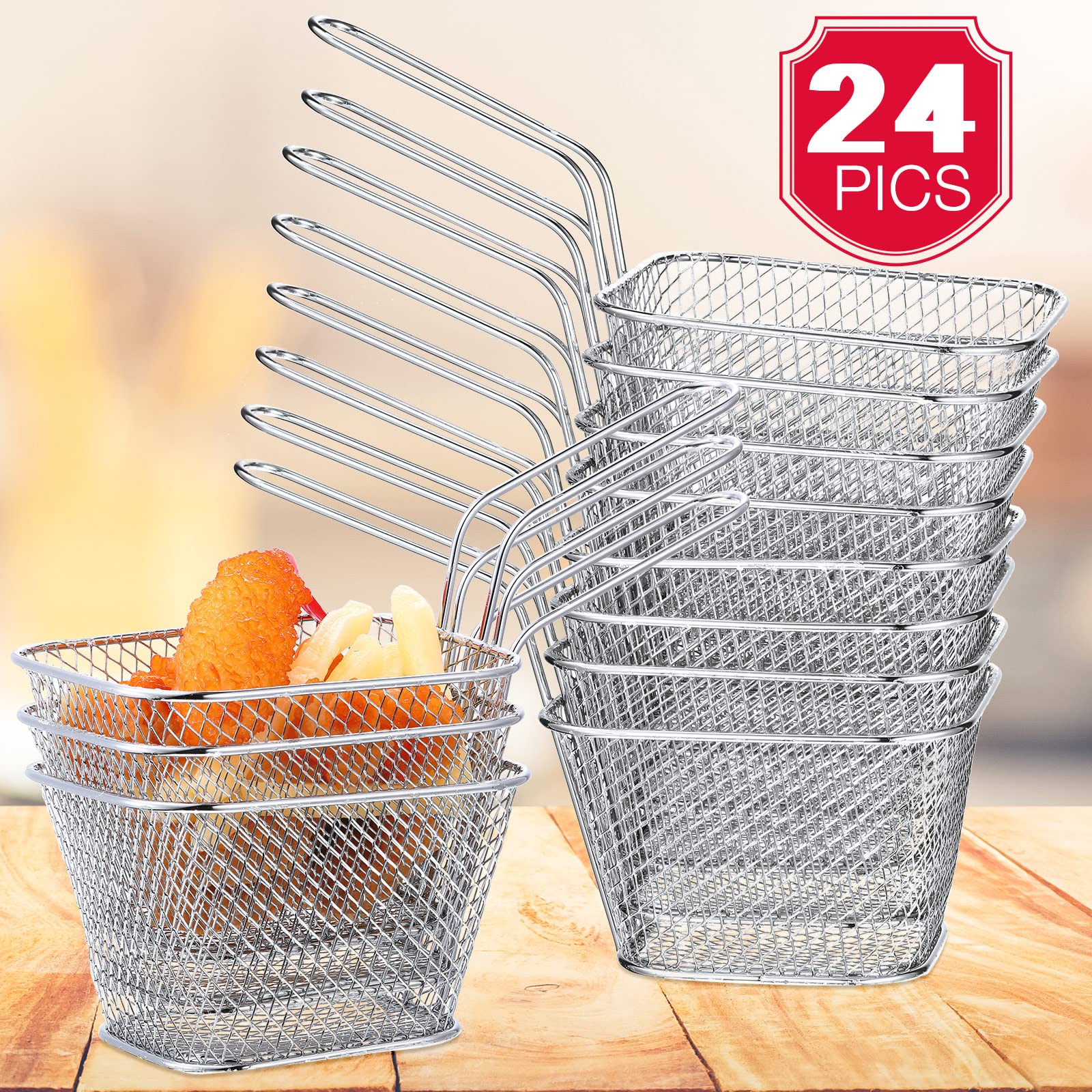 What You Can Get: the package comes with 24 pieces of fryer baskets with handle, large quantity can meet your different cooking demands, classic color makes them befitting for most occasions, you can hold different fried snacks with these baskets at the same time or share them with your family and friends