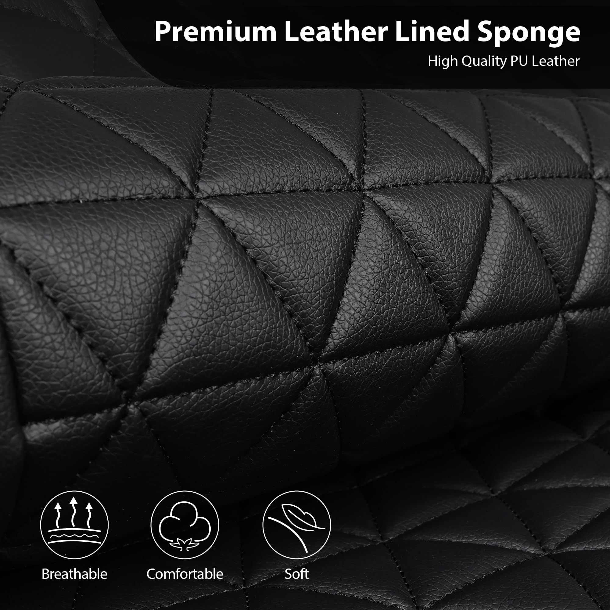 PACKAGING INCLUDING - Includes two front leather seat covers and two removable headrests, ideal for the driver's and front passenger's seats in your vehicle. Protect fits your front seats from scratches, dirt, dander, and spills. Seat covers are removable and washable. The reverse side has anti slip nail bottom, which is anti slip and waterproof. Tightly fit the car seat to ensure driving safety