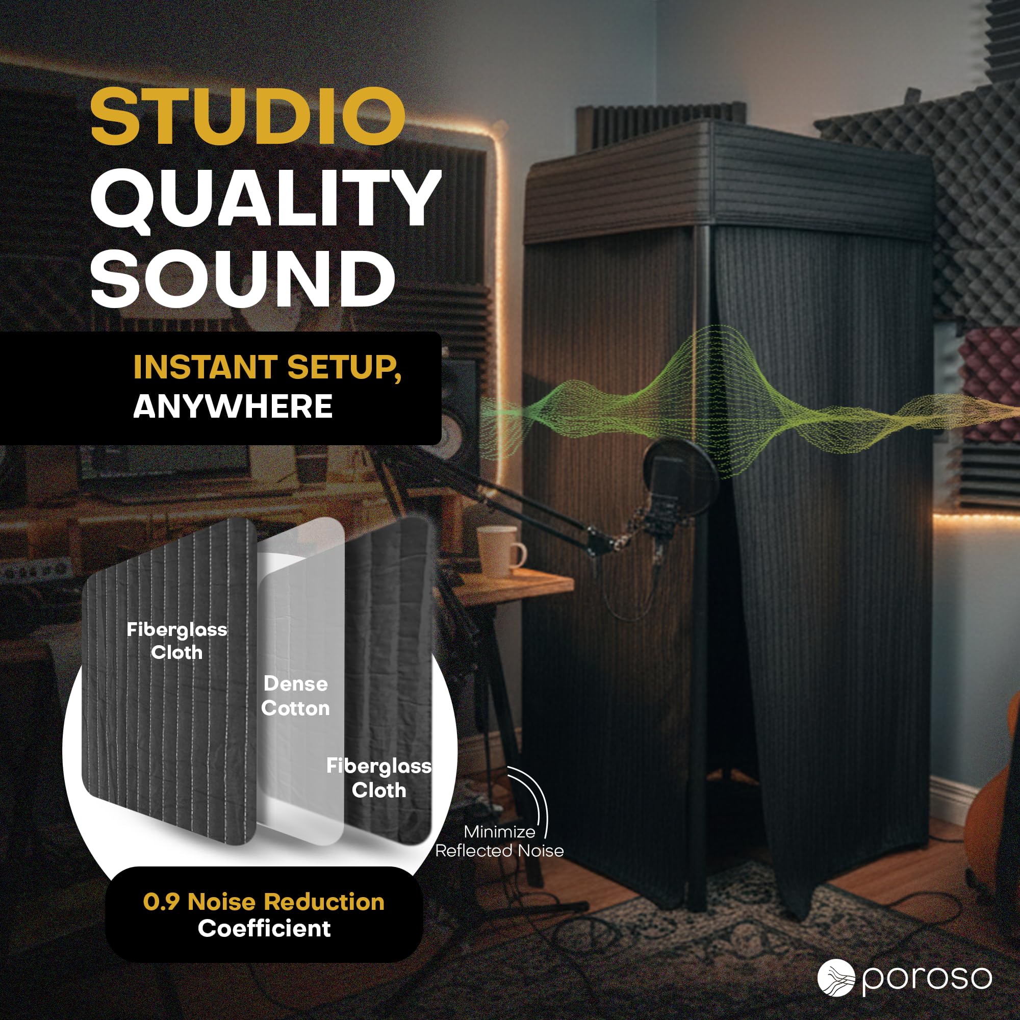 🎙️REVOLUTIONARY WAY TO CREATE SOUND - Need a portable recording booth? This isolation booth is perfect for anyone who needs to record music or voiceovers on the go. The Poroso Sound Booth is lightweight & easy to transport, so you can take it with you wherever you go. It's incredibly durable, so you can be sure your recordings will be pristine every time. Whether you're a musician looking for that perfect tone, or a podcaster in need of clear and concise sound, Poroso is perfect for you.