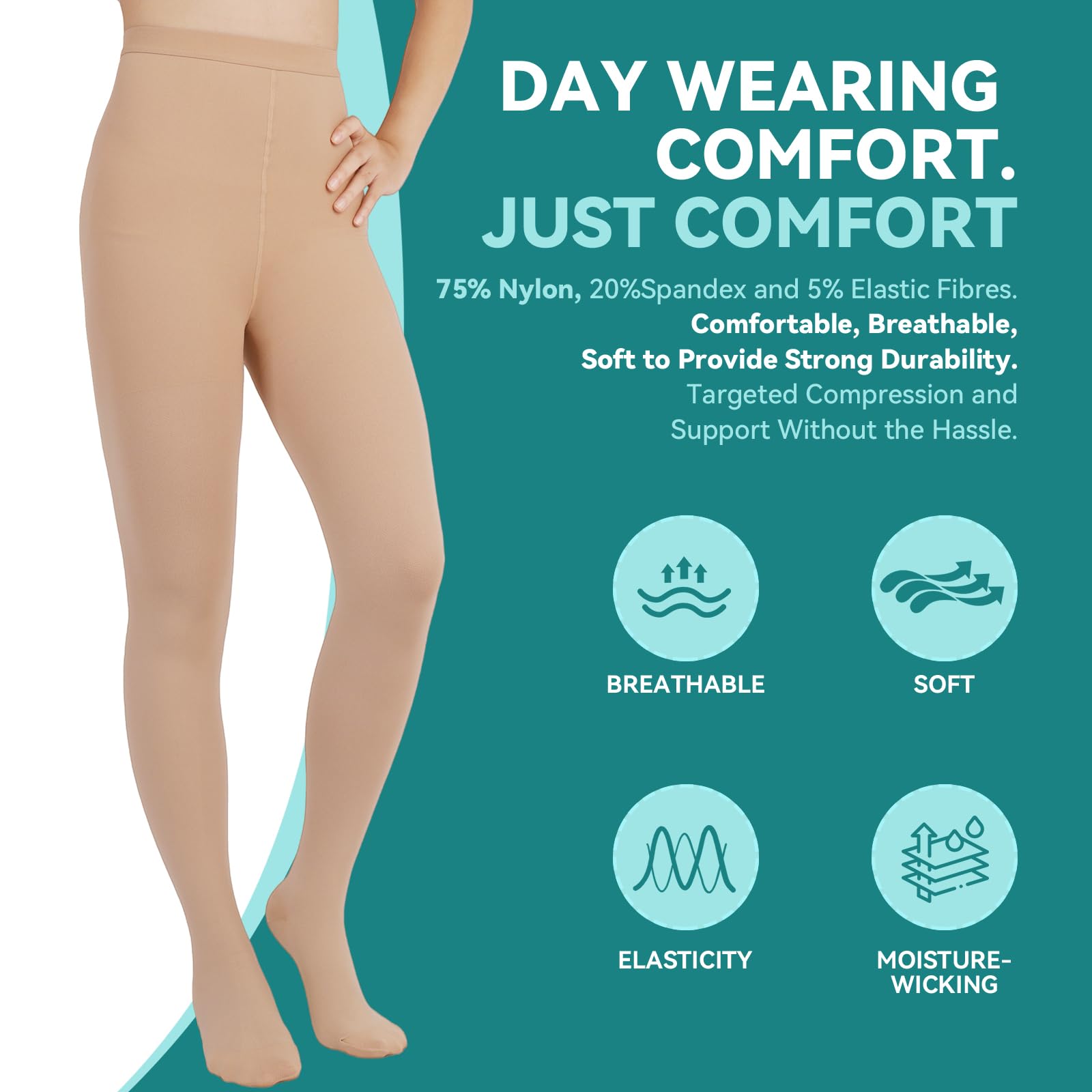 EFFECTIVE PREVENTION & RELIEF: Graduated compression tights for women improve blood circulation in the legs and enhance oxygen flow. Ideal for leg swelling, spider and varicose veins, cellulitis, blood circulation, post phlebectomy, leg pain, venous insufficiency, blood clots, DVT and after sclerotherapy.