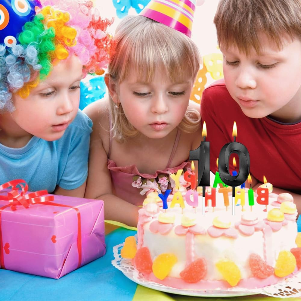 Safe & Reliable Materials: Birthday cake numeral candles are made of high quality wax material (reliable) to ensure non-toxic, non-smoke, no odor, easy to carry, easy to insert into the cake and provide a bright light, also burns evenly and consistently, giving you a wonderful experience. velas para cumpleaƱos 10th birthday decorations for boys birthday candles black tall birthday candles for cakes sparkling candles black candles birthday happy 10th birthday decorations