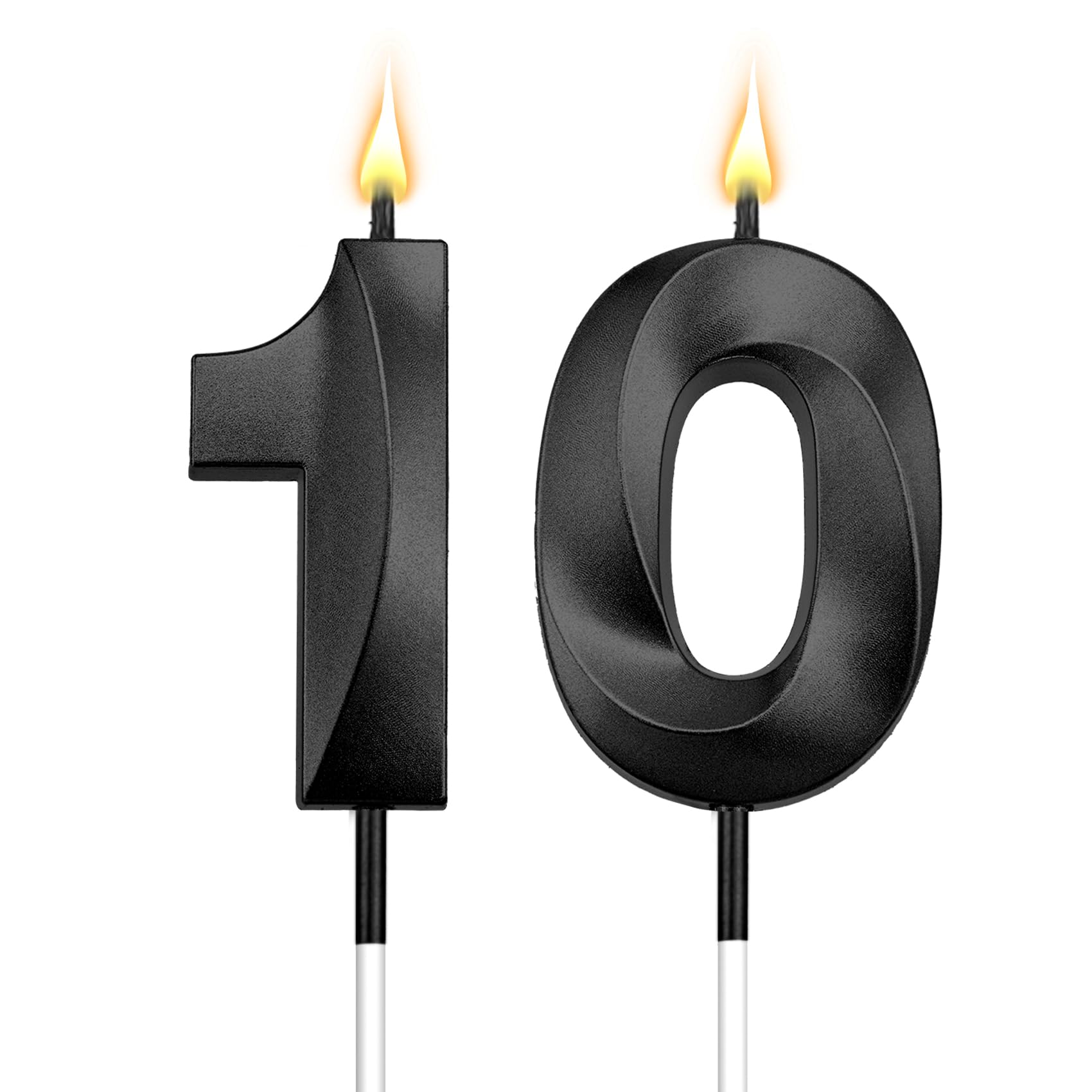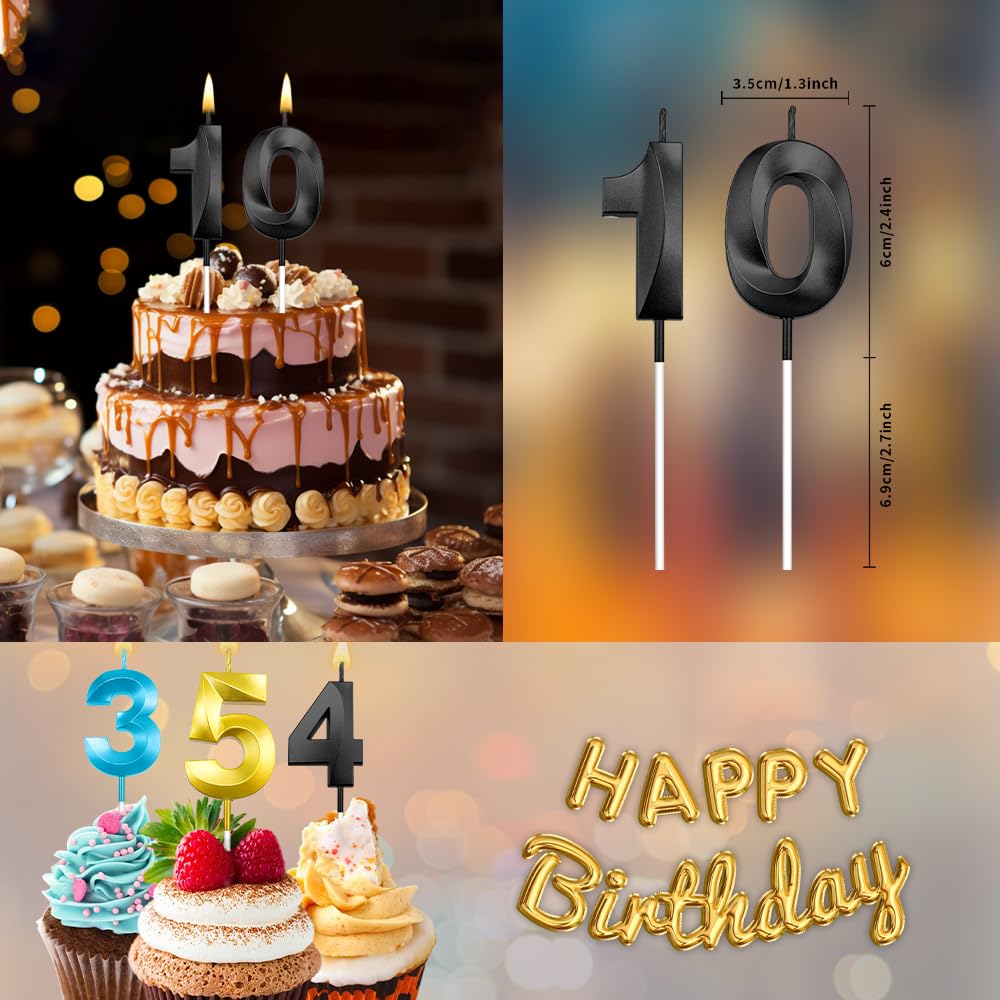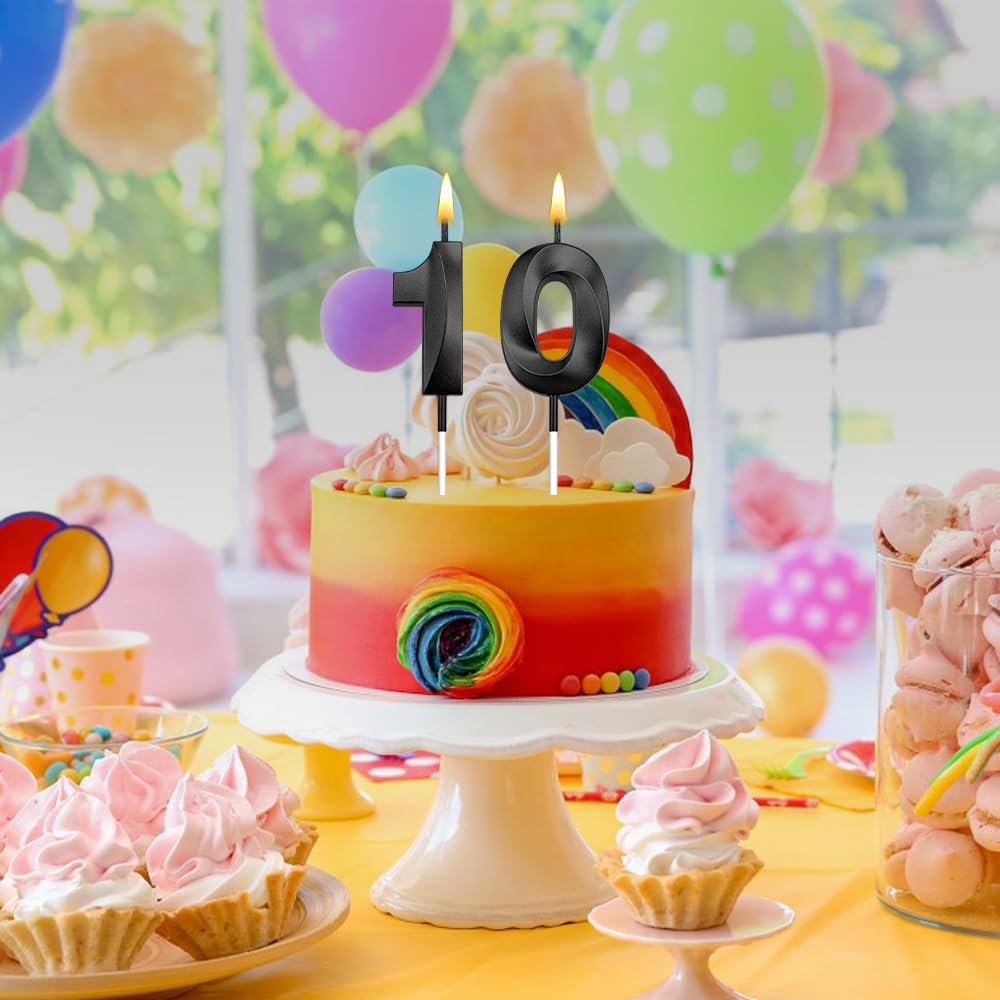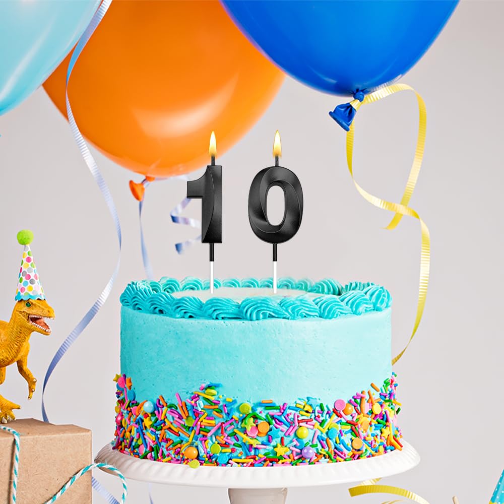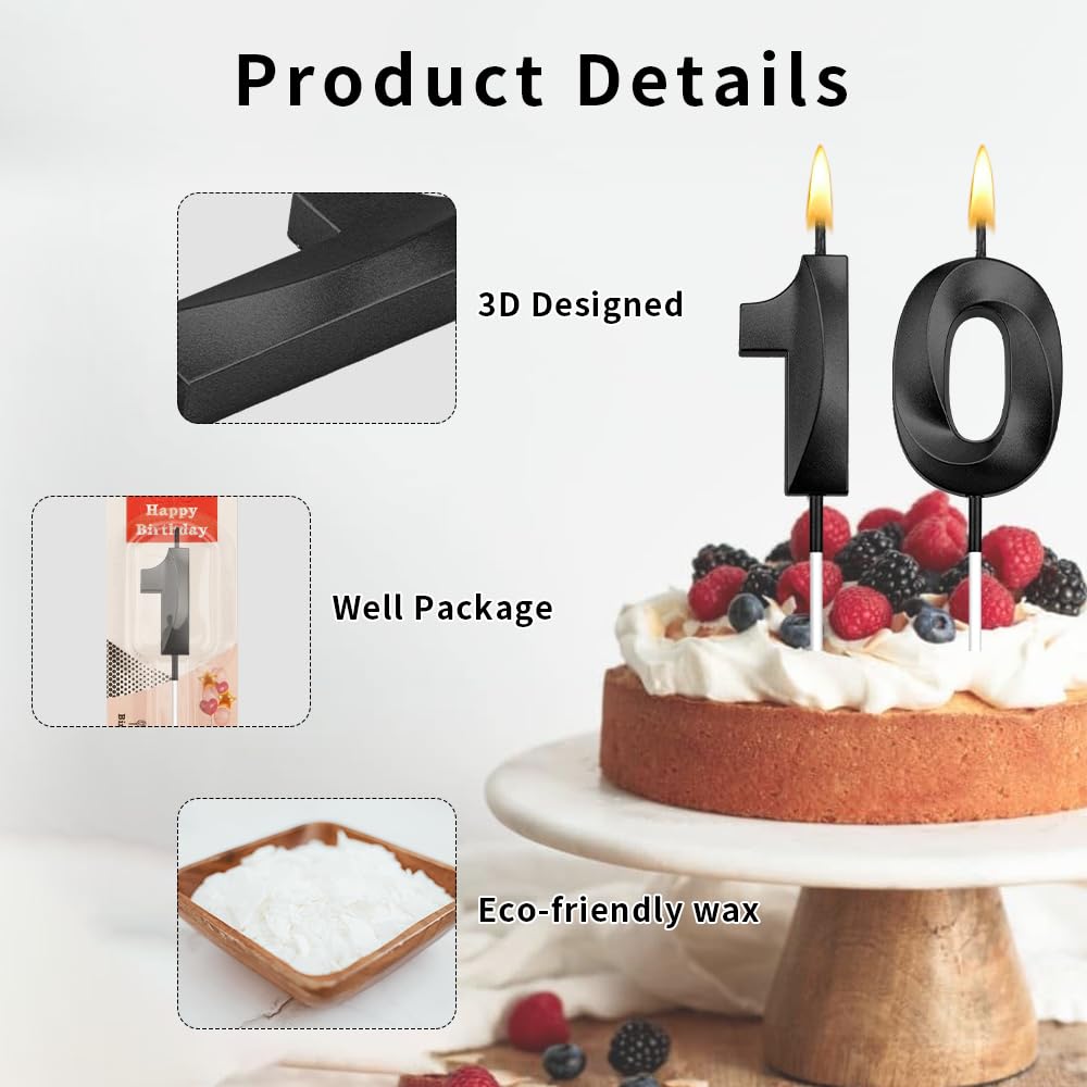 3d Visual Sense Birthday Candles: Package contains 2 Pcs black birthday candles including number 1 birthday candle and number 0 birthday candle. The sparkling candles for cake is eye-catching and sparkling in the dark light, you can also use number candles to be beautiful cake decorations to embellish your cakes and cupcakes make your birthday cakes stand out, create the perfect birthday atmosphere. It's your special day and we want you to revel in the joy. 10 birthday candle number 10 candle
