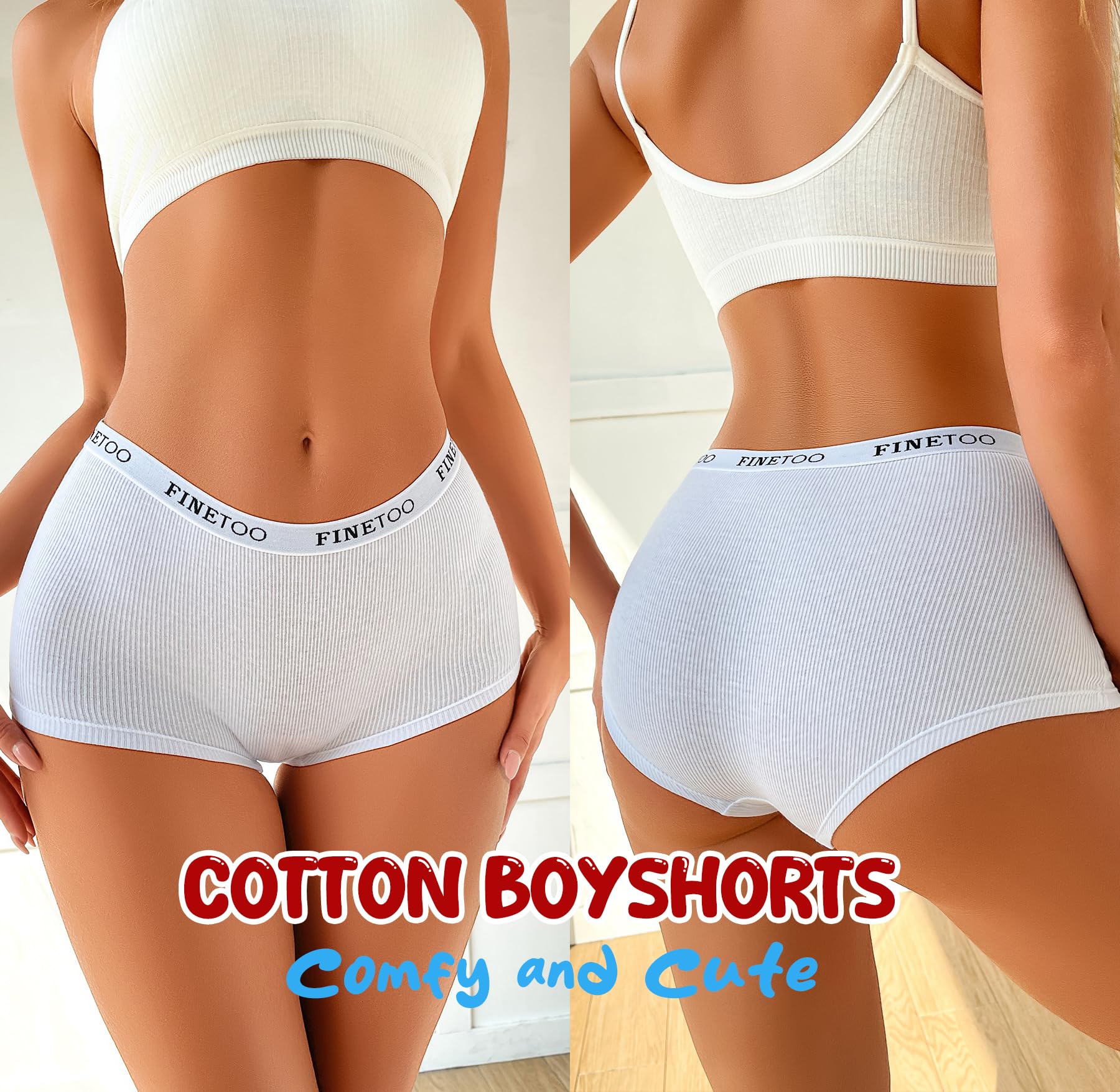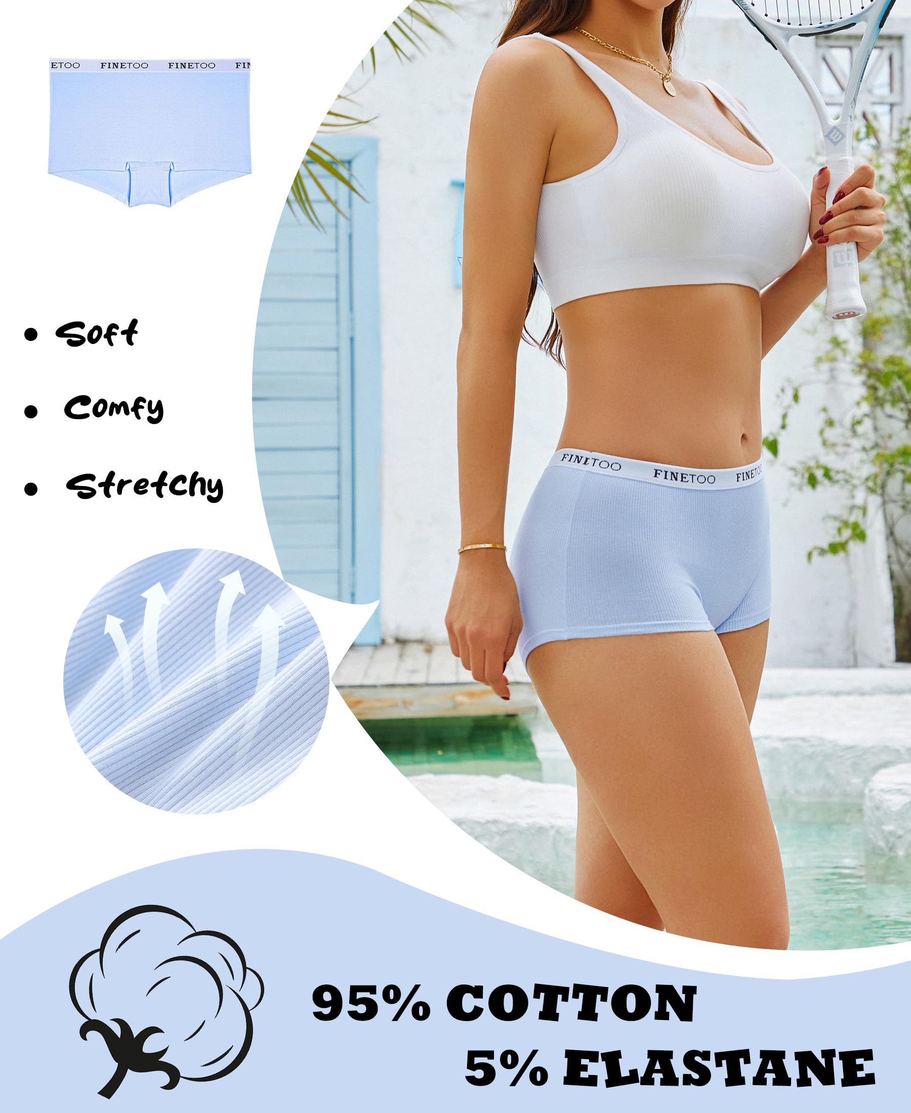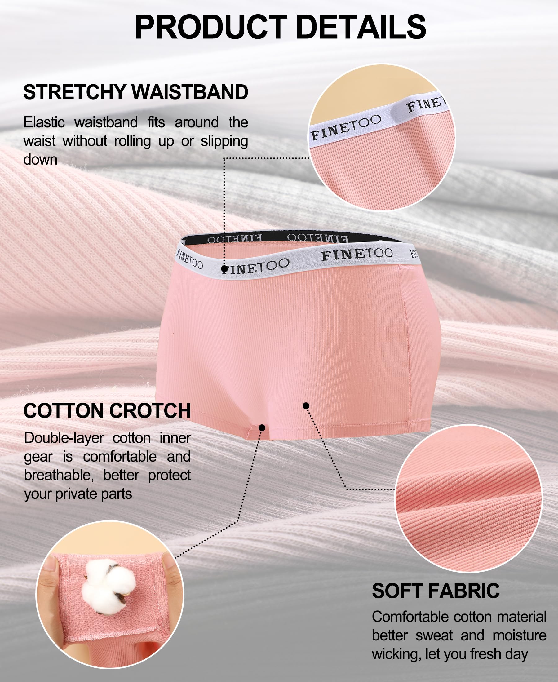 Classic womens underwear:Cotton panties with stretch FINETOO logo waistband,stay at your waist well. The belt doesn't shrink after washing.