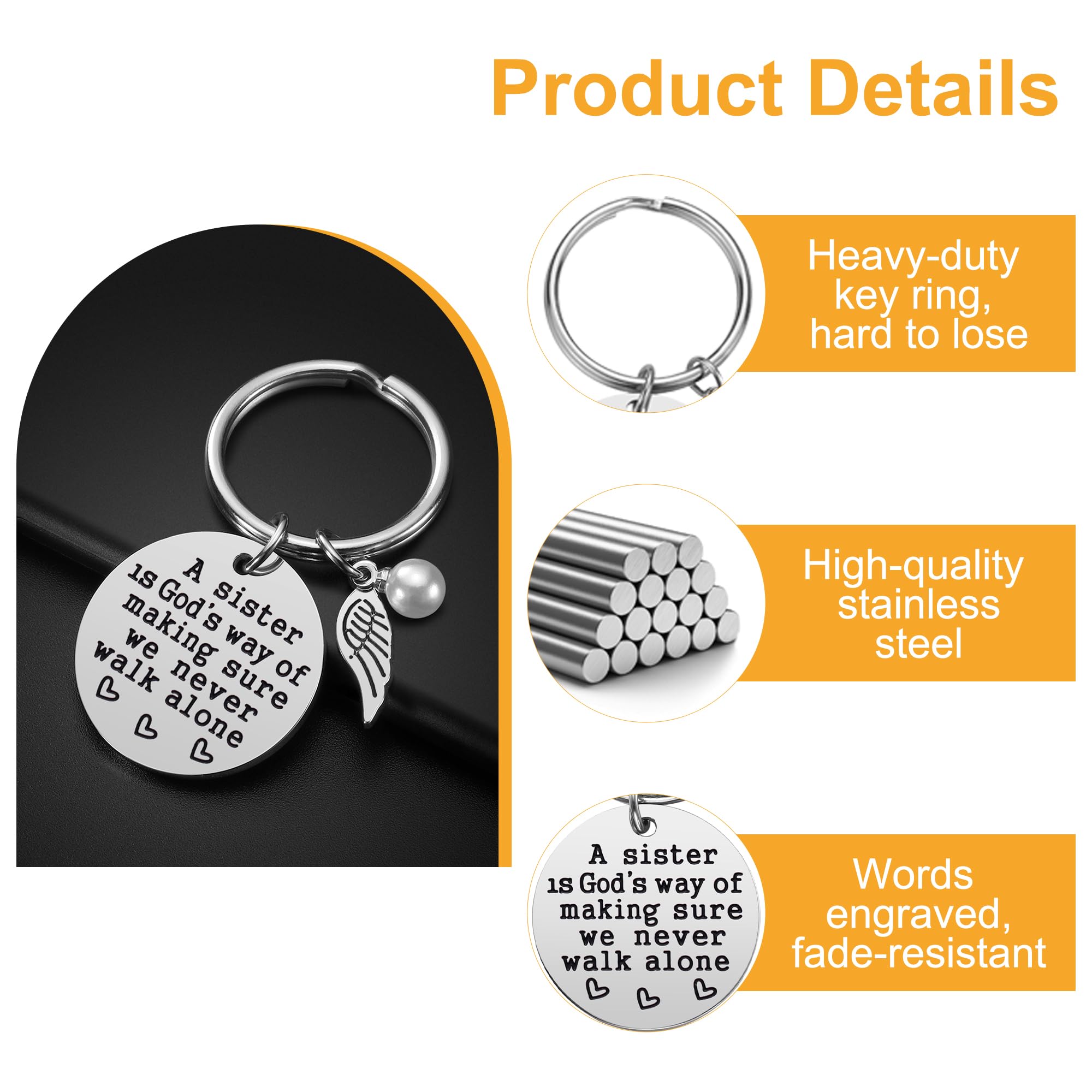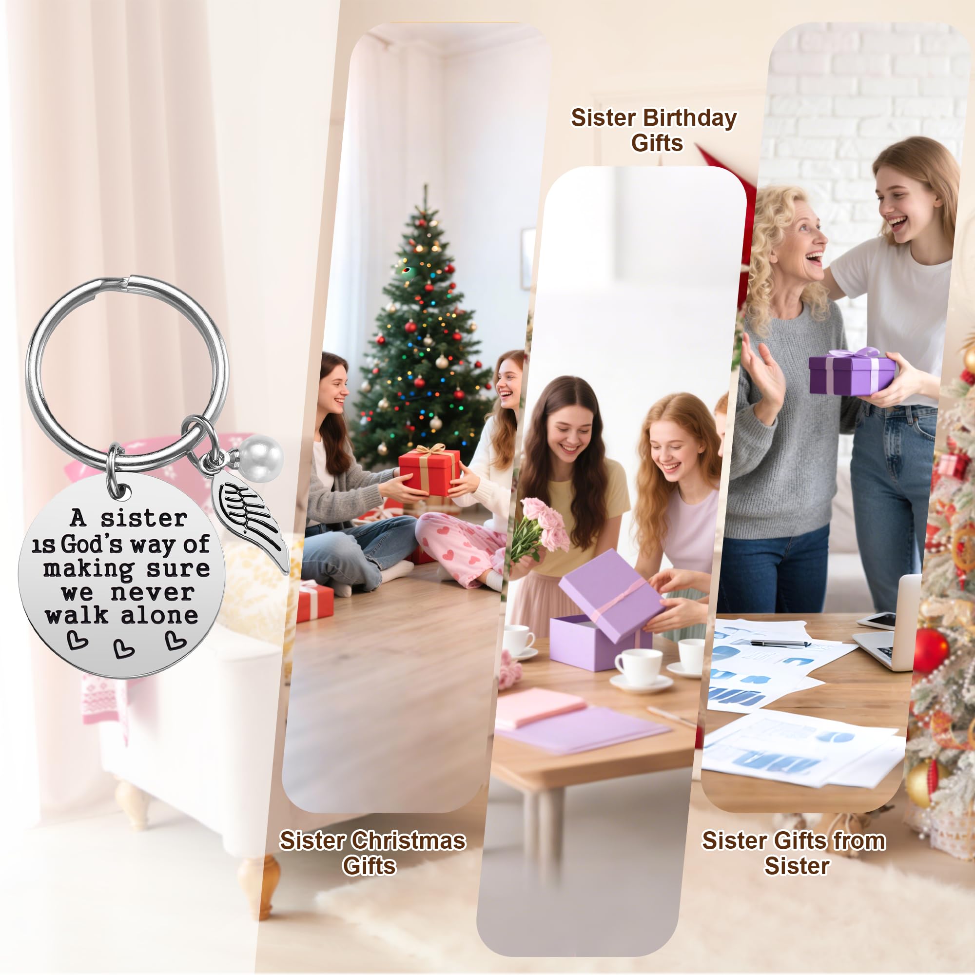 SISTER GIFTS FROM SISTER: A Sister is God's Way of Making Sure We Never Walk Alone Sister Keychain for Sisters