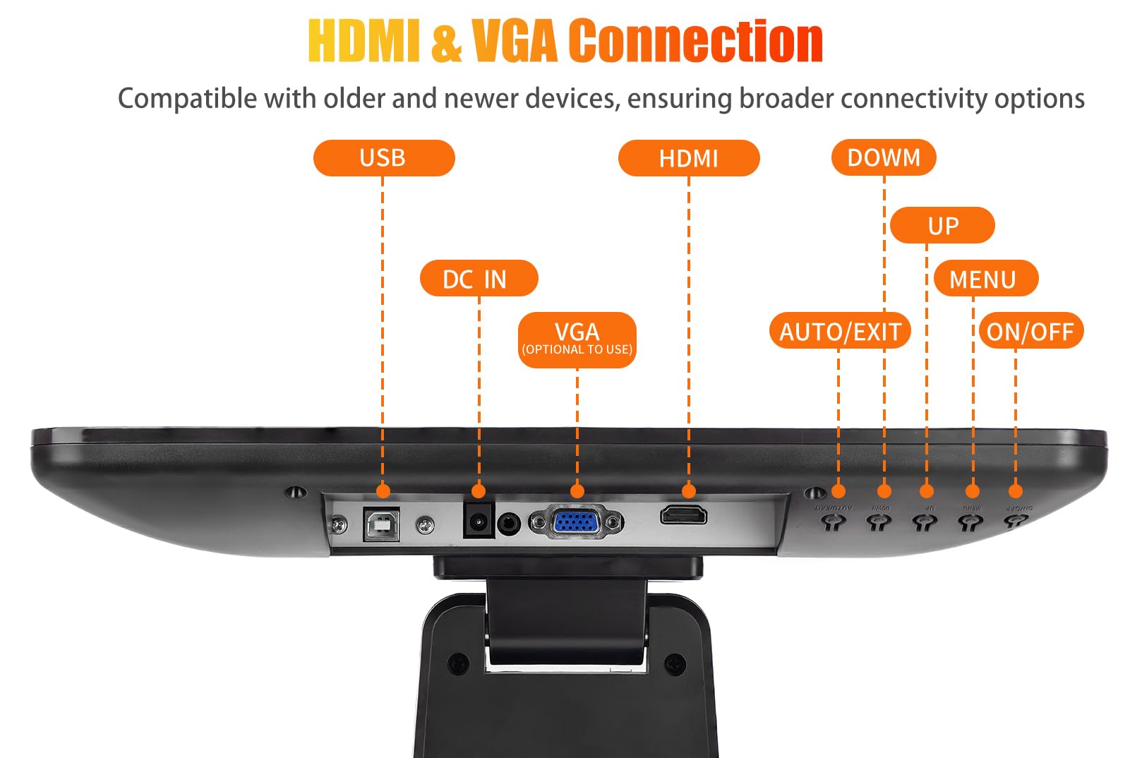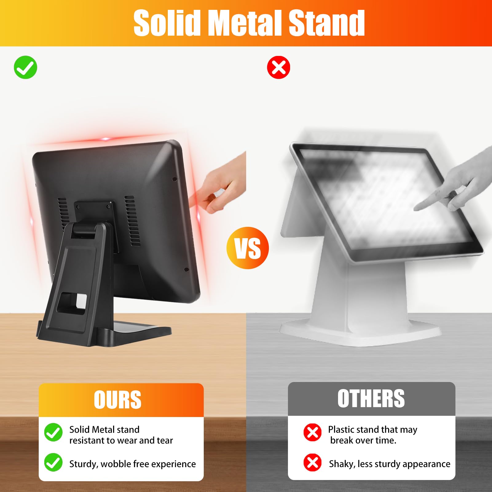 ✔【 Solid Metal Stand 】- The solid metal stand for a touch screen monitor offers exceptional stability, preventing tipping or wobbling in busy environments. Its sturdy construction securely holds the monitor in place, reducing the chance of damage and maintaining uninterrupted operation. This stability boosts user confidence and safety during touch screen interaction, ensuring a smooth and dependable user experience.