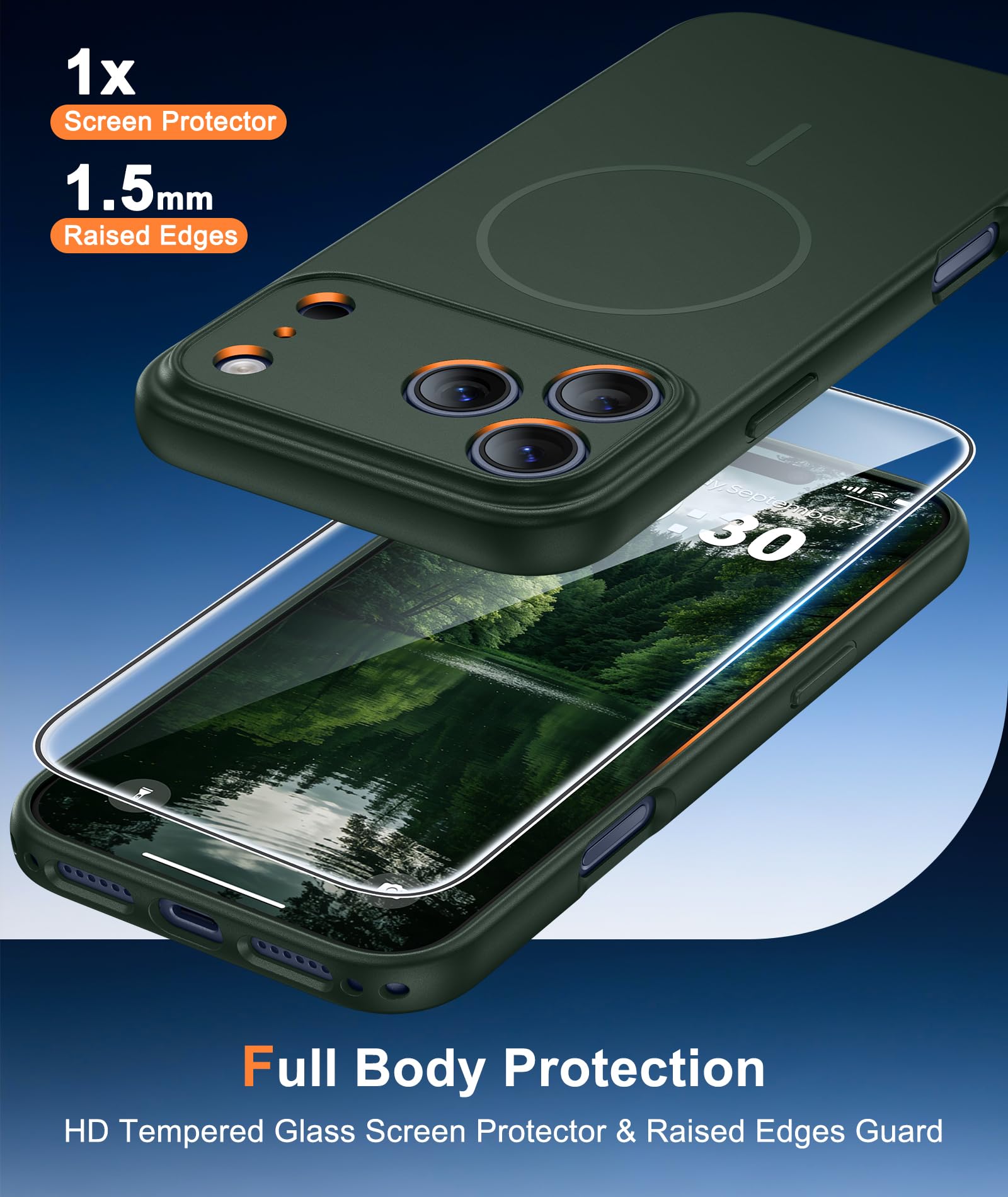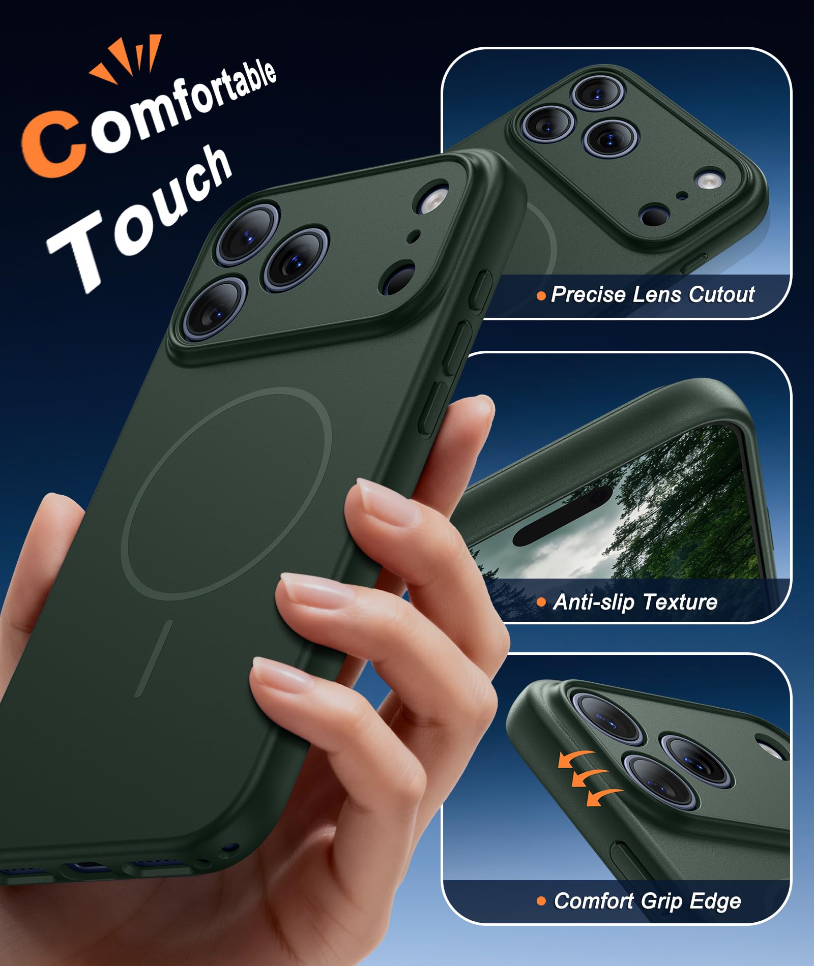 14FT Military-Grade Drop Protection: This 17 pro max case designed with a rigid polycarbonate hard back and flexible shock-absorbing TPU bumper, along with built-in corner airbags to absorb and disperse impact. Effectively guards against daily drops, bumps, and scratch