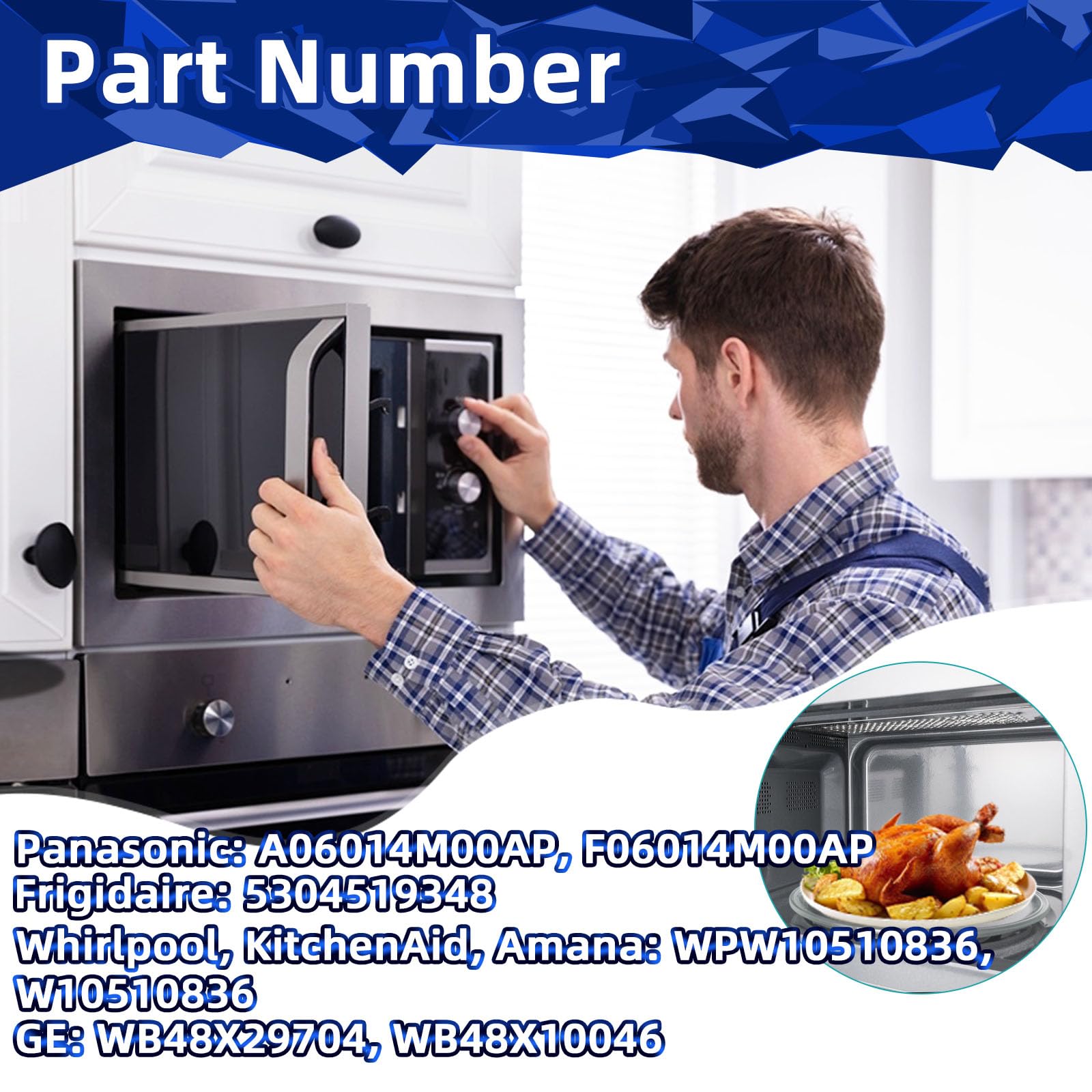 [REPLACEMENT FOR MICROWAVE TURNTABLE] - This microwave turntable meets OEM Standards. The microwave glass plate compatible with Panasonic A06014M00AP, F06014M00AP; GE WB48X10046, WB48X29704; Whirlpool WPW10510836, W10510836; Toshiba 12570000000991; Frigidaire 5304519348; Bosch, Thermador 00487763 and more