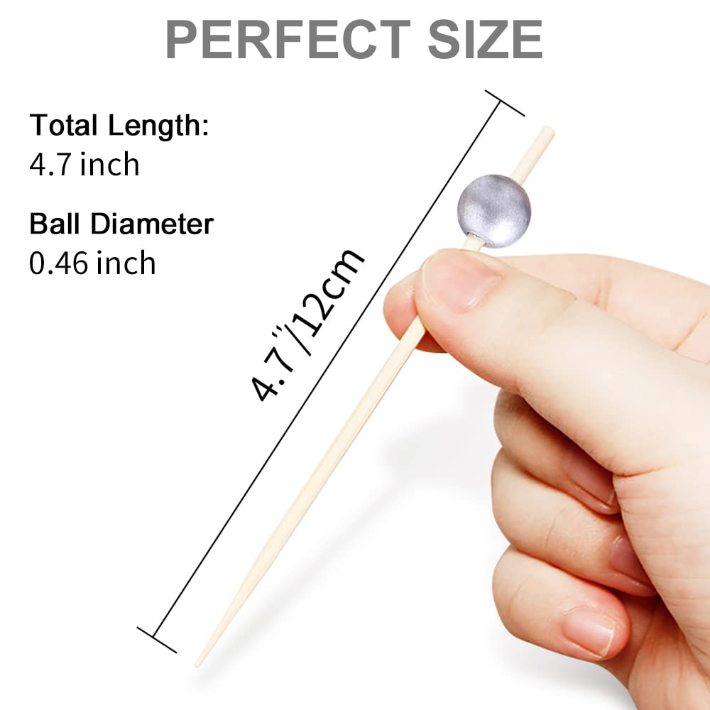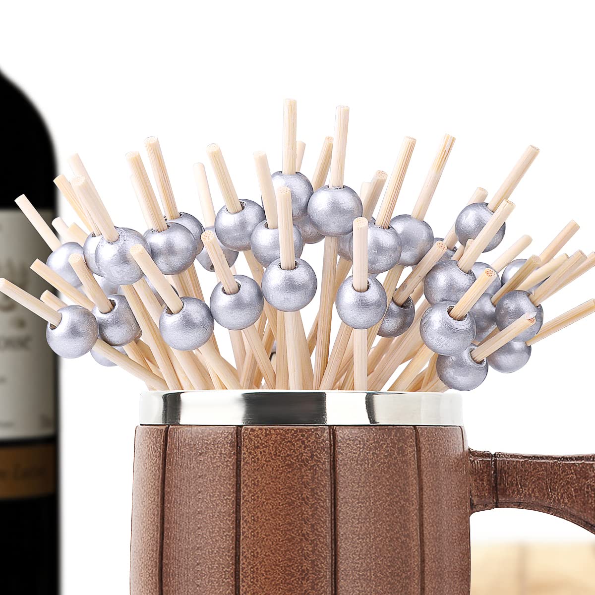 SEANSDA 200PCS Cocktail Picks, Fancy Cocktail Toothpicks for Appetizers Picks, Bamboo Cocktail Skewers for Appetizers Wedding Party Toothpicks, Silver Pearl Food Picks for Appetizers (4.7 Inch)