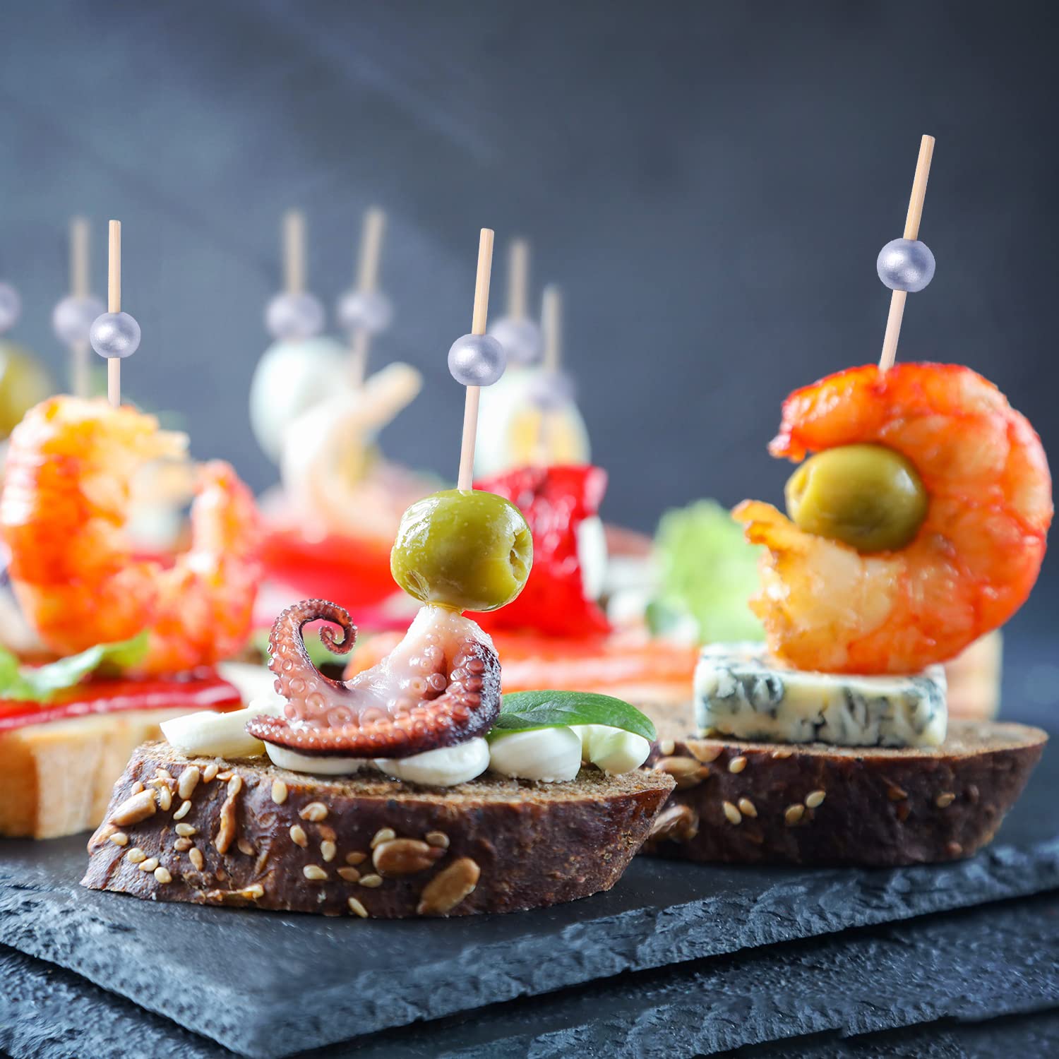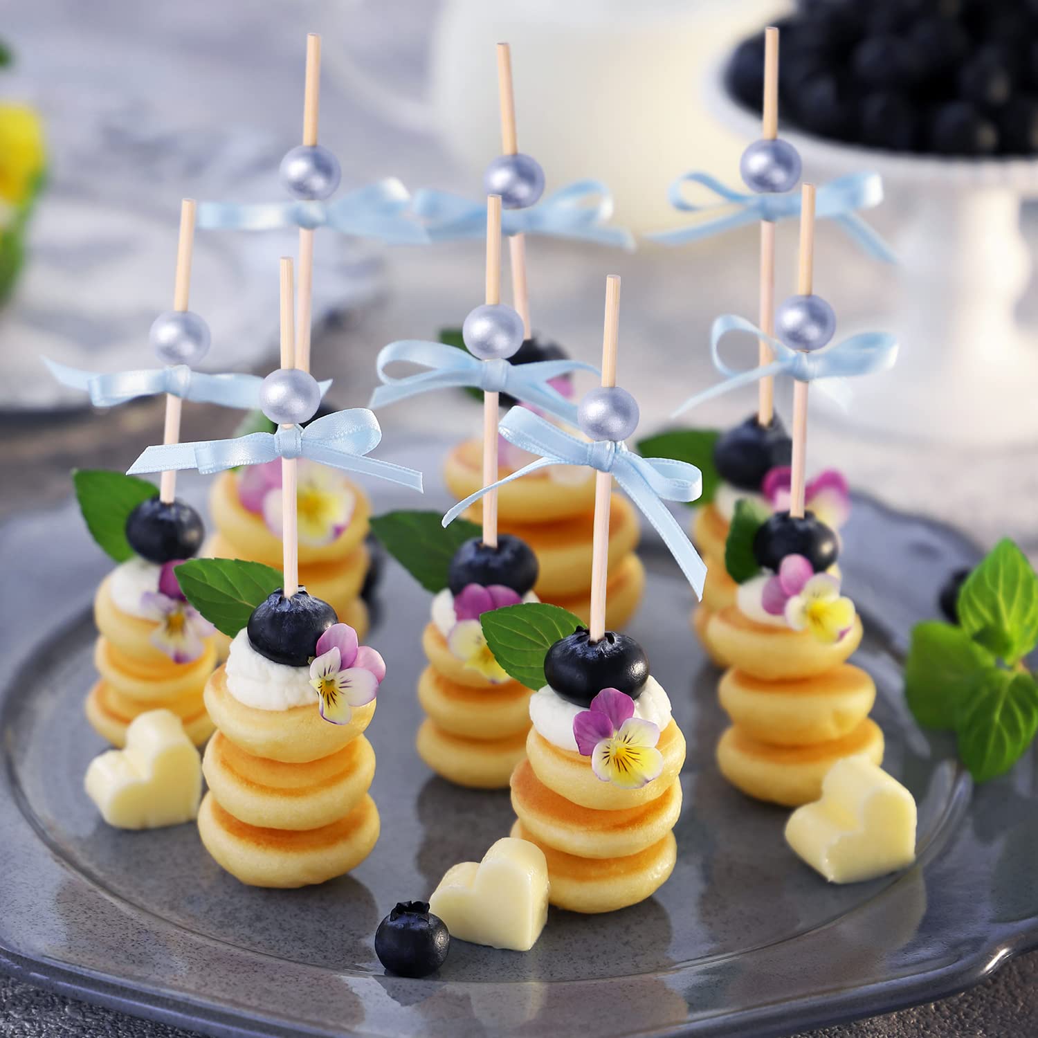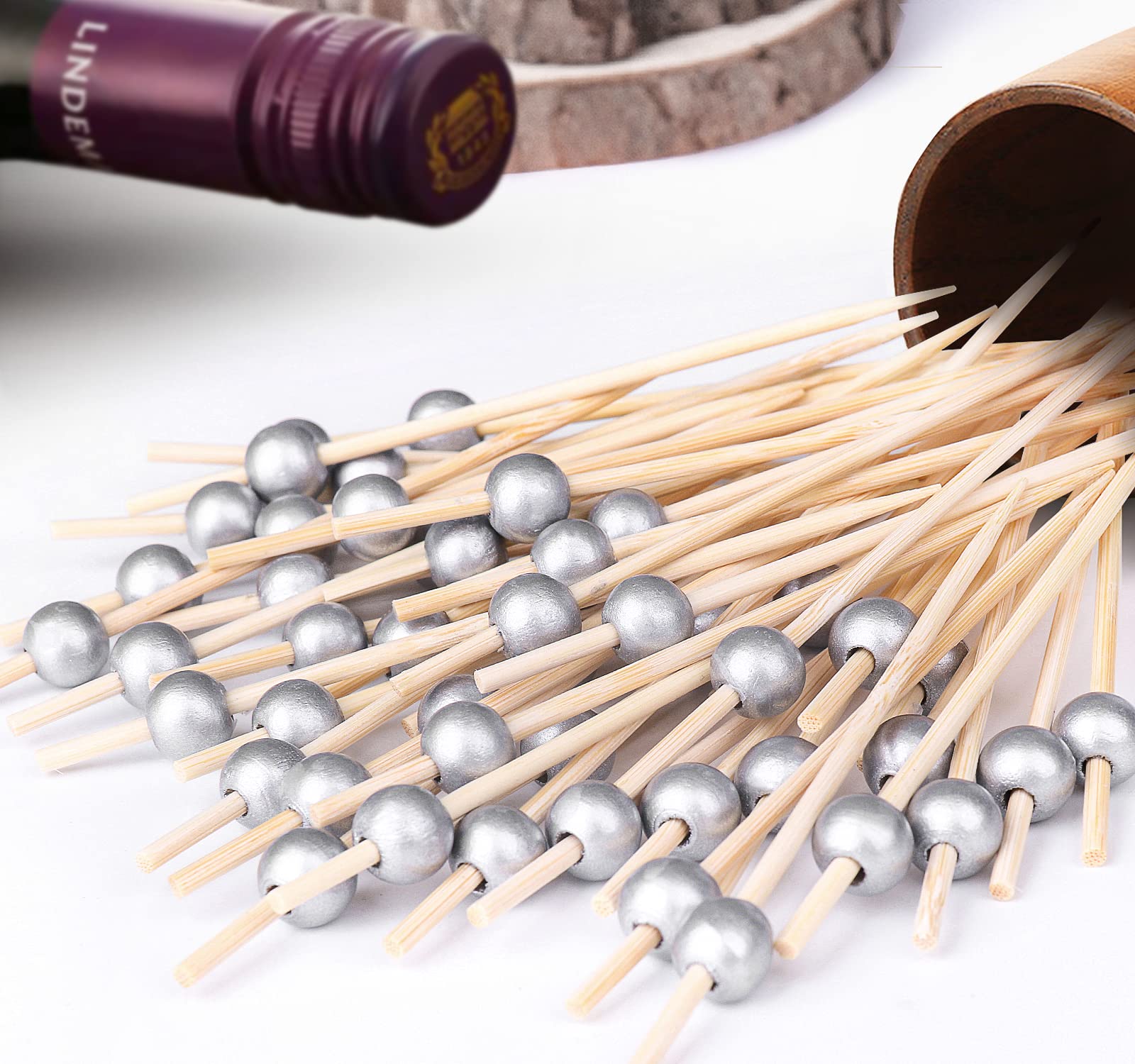 STRONG AND DURABLE- Elegant handmade silver pearl appetizer picks are made of quality bamboo with the smooth surface that no burr, giving you comfortable use feeling. And the bamboo cocktail skewers for appetizers are more safe and stronger than plastic toothpicks.