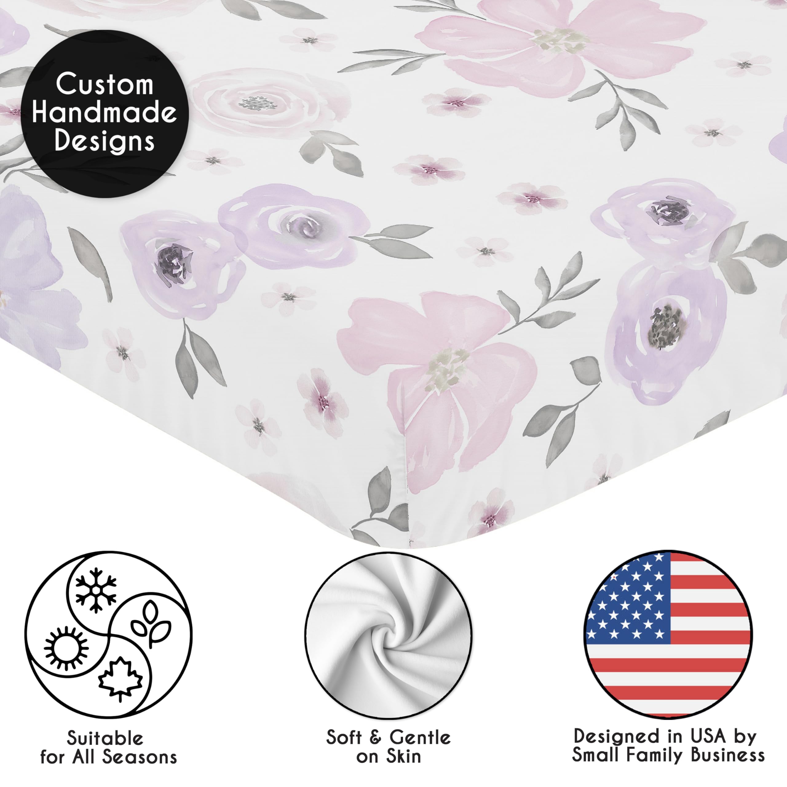 DESIGNED IN THE USA: By real parents who understand the need for comfort, practicality, and style. Sweet Jojo Designs is a small, women owned business. The mom's on our team know a crib mattress sheet is first priority for your baby essentials to ensure a restful night of sleep. We use top fabrics and designs to create soft crib sheets that are stretchy and comfortable for your infant or toddler. We've studied the latest trends in floral crib sheets for baby girl to bring you the finest product.