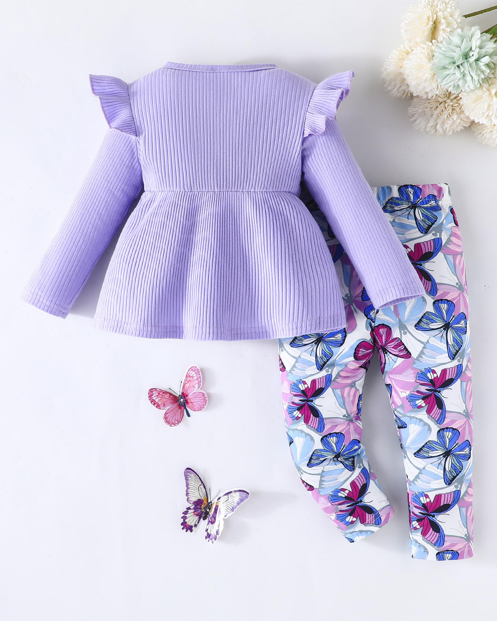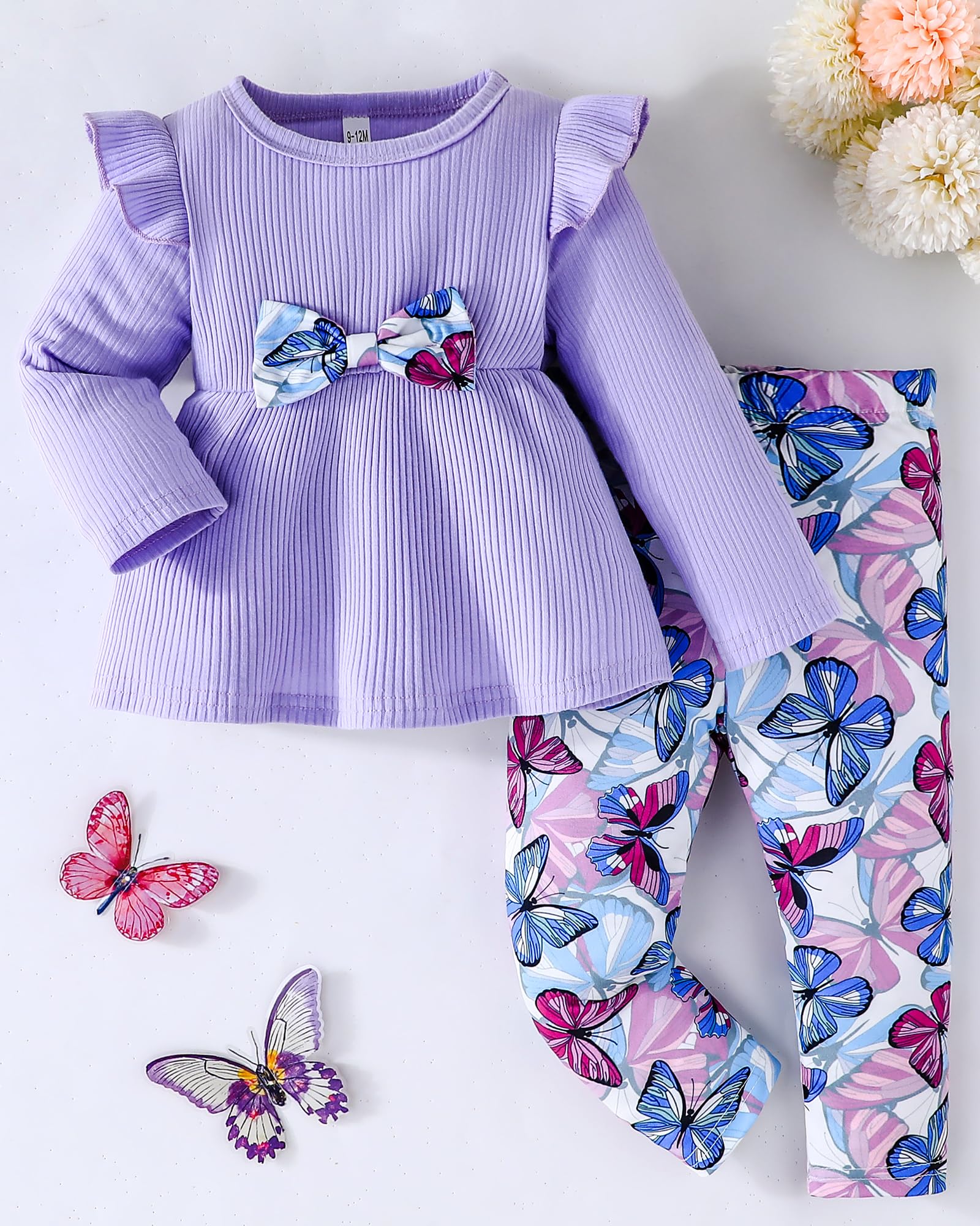 Cute Bow & Vibrant Butterfly Patterns: This Infant to Toddler Girl Clothes Sets Replaces Boring Basic Wear for 6M-4Y Girls' Social Events - Boosts Charming-Look with Photo-Ready Cuteness!