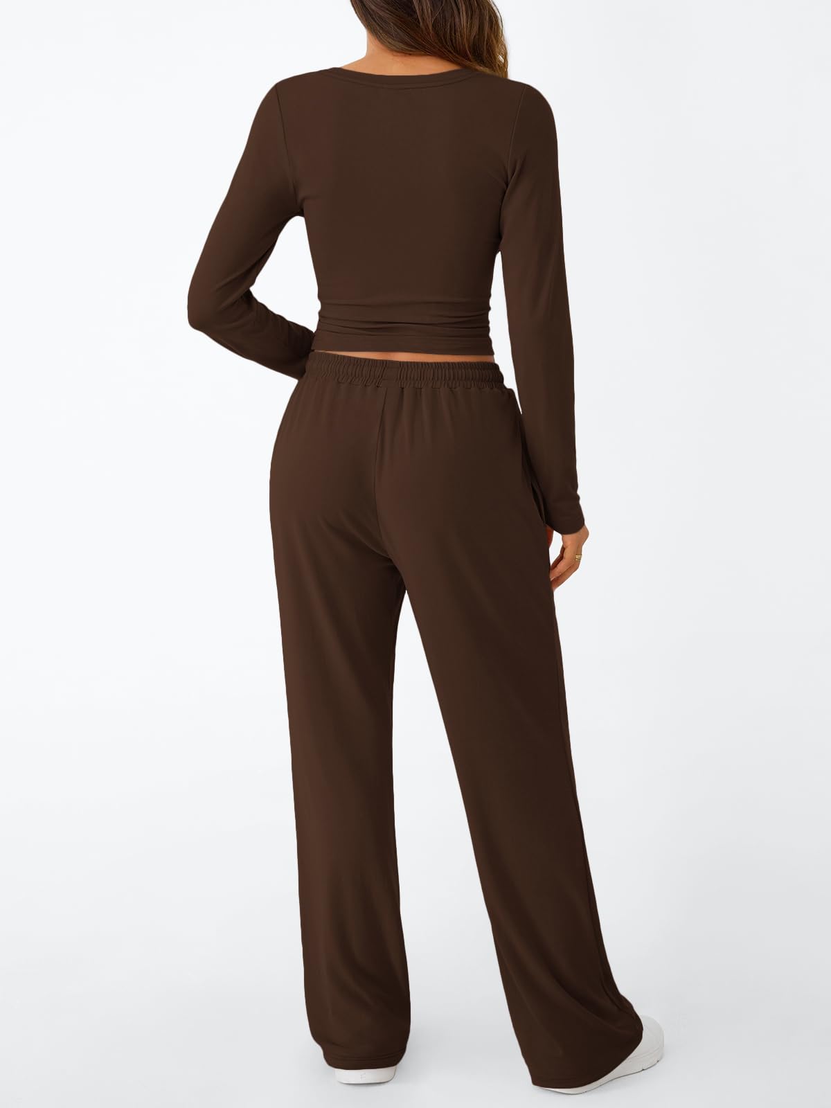 Confident & Practical Fit—Designed to celebrate your shape. The top features feminine side ruching and a slightly cropped length that pairs seamlessly with high-waist pants—elevating your silhouette without being overly revealing. The wide-leg pants complete the look with a chic adjustable drawstring waist and convenient side pockets, perfect for carrying your phone and essentials hands-free.