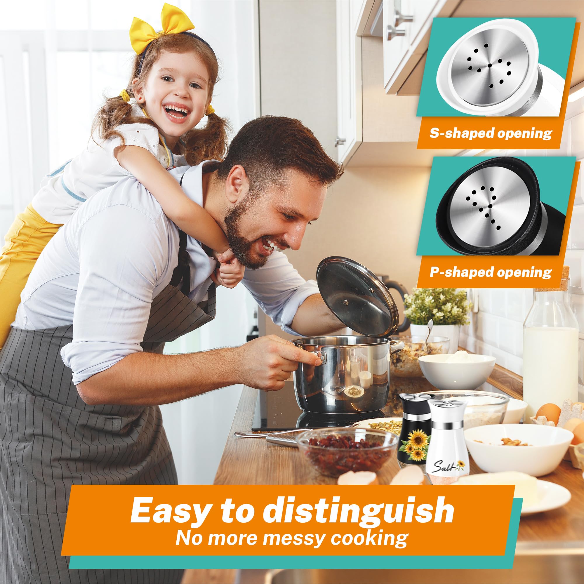 No Over-Seasoning:There are 11 small holes evenly distributed on the Stainless Steel Lid, you only need to shake 1-2 times at most to get the salt and pepper flowing just right, saving time and not over-seasoning. You and your family can enjoy the pleasuring of cooking