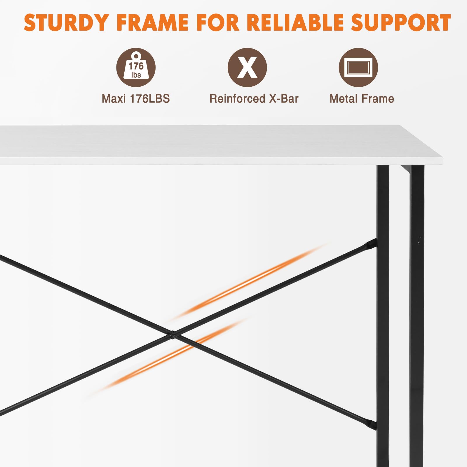 High-Quality Desig: The writing desk is made of high-quality materials. The desktop is made of thick particle board, which is resistant to scratches, water, and damage, making it easy to clean. The metal frame and corner reinforcement structure provide reliable support for all day use, weighing up to 176 pounds