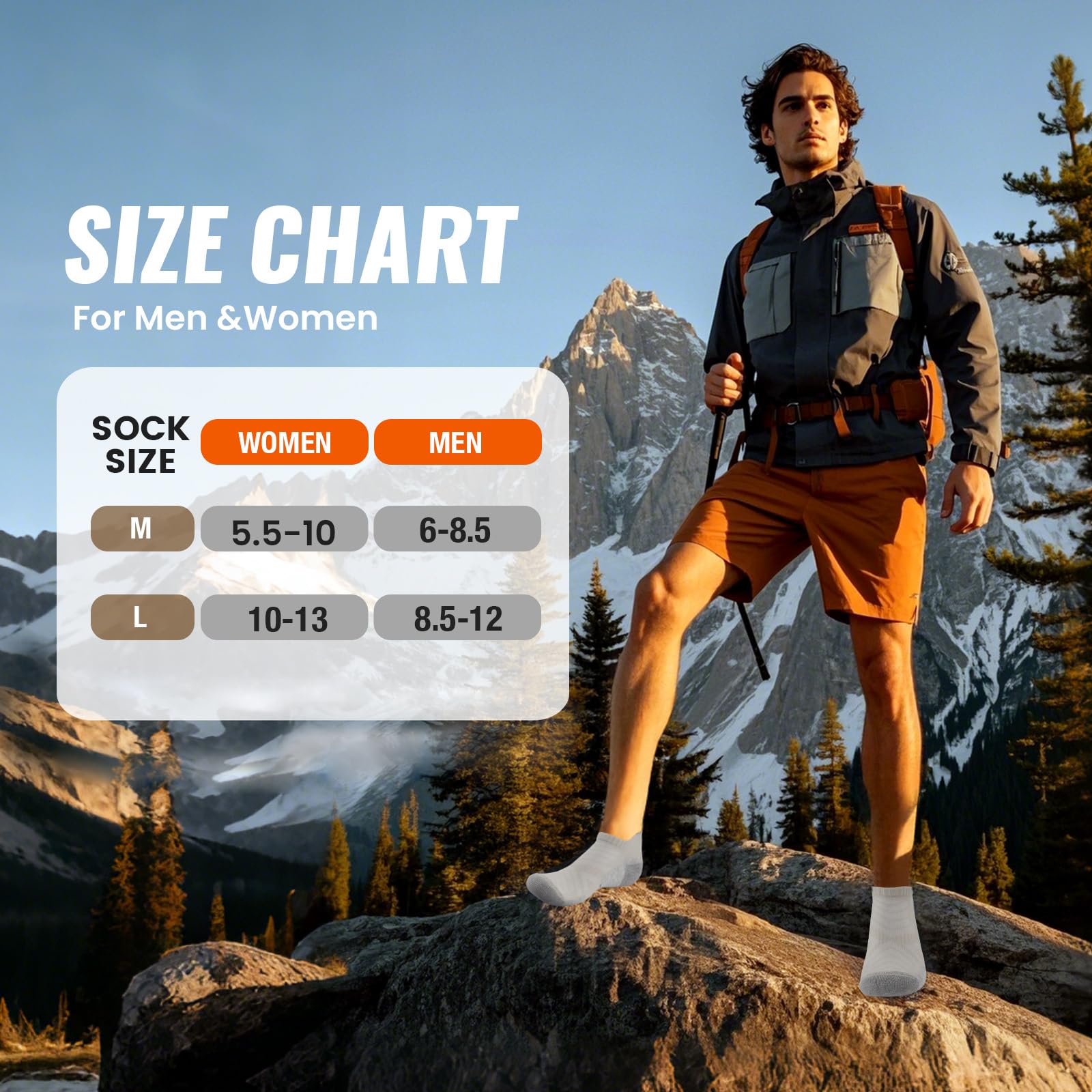 MOISTURE WICKING- By designing with ventilation mesh function, these wool hiking ankle socks are breathable and release heat, which keep feet dry quickly and effectively manage moisture to keep freshness. They are suitable for hiking, running, outdoor walking , trekking or working.