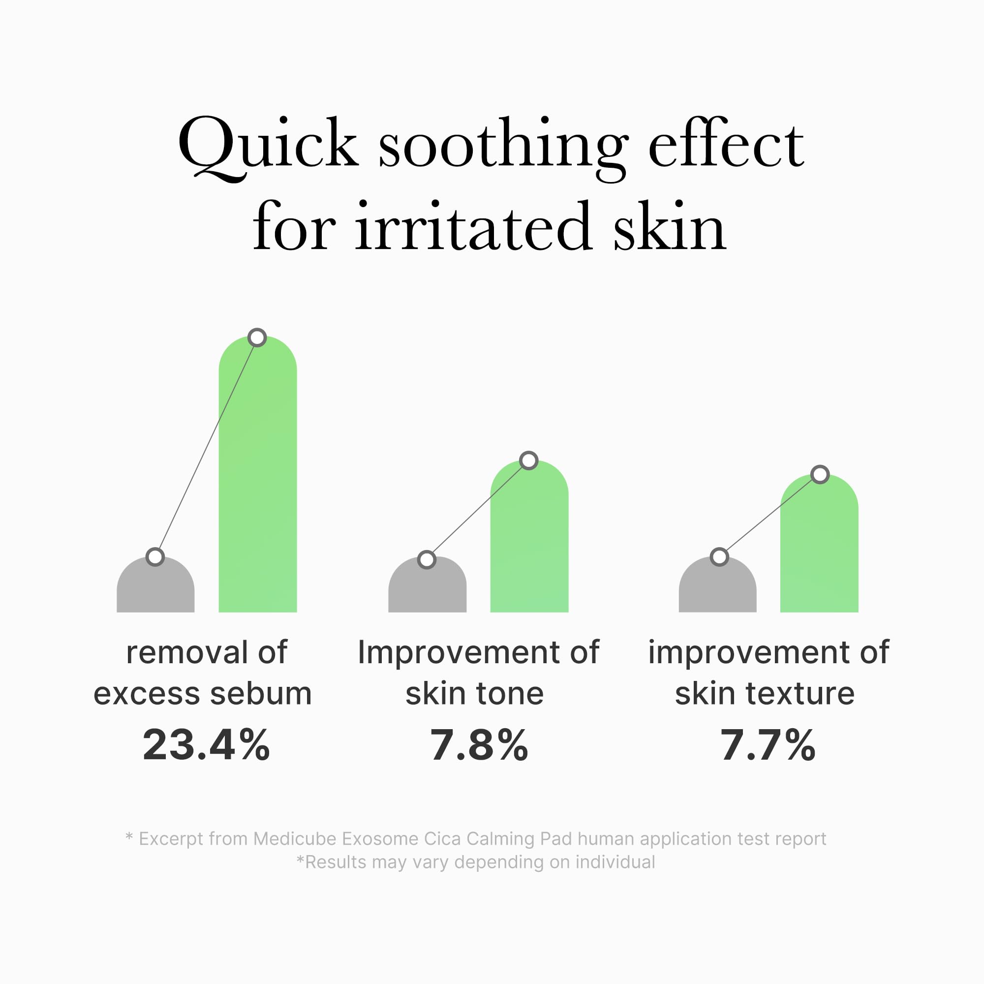 ENRICHED WITH INNOVATIVE INGREDIENT : Contains exosome cica, Nano-sized ingredient smaller than pores with 5.3 times more powerful soothing effect than general cica. (*Clinical Trial Tested by 'ICBIO Co., Ltd' / Results may vary depending on individual skin types.)
