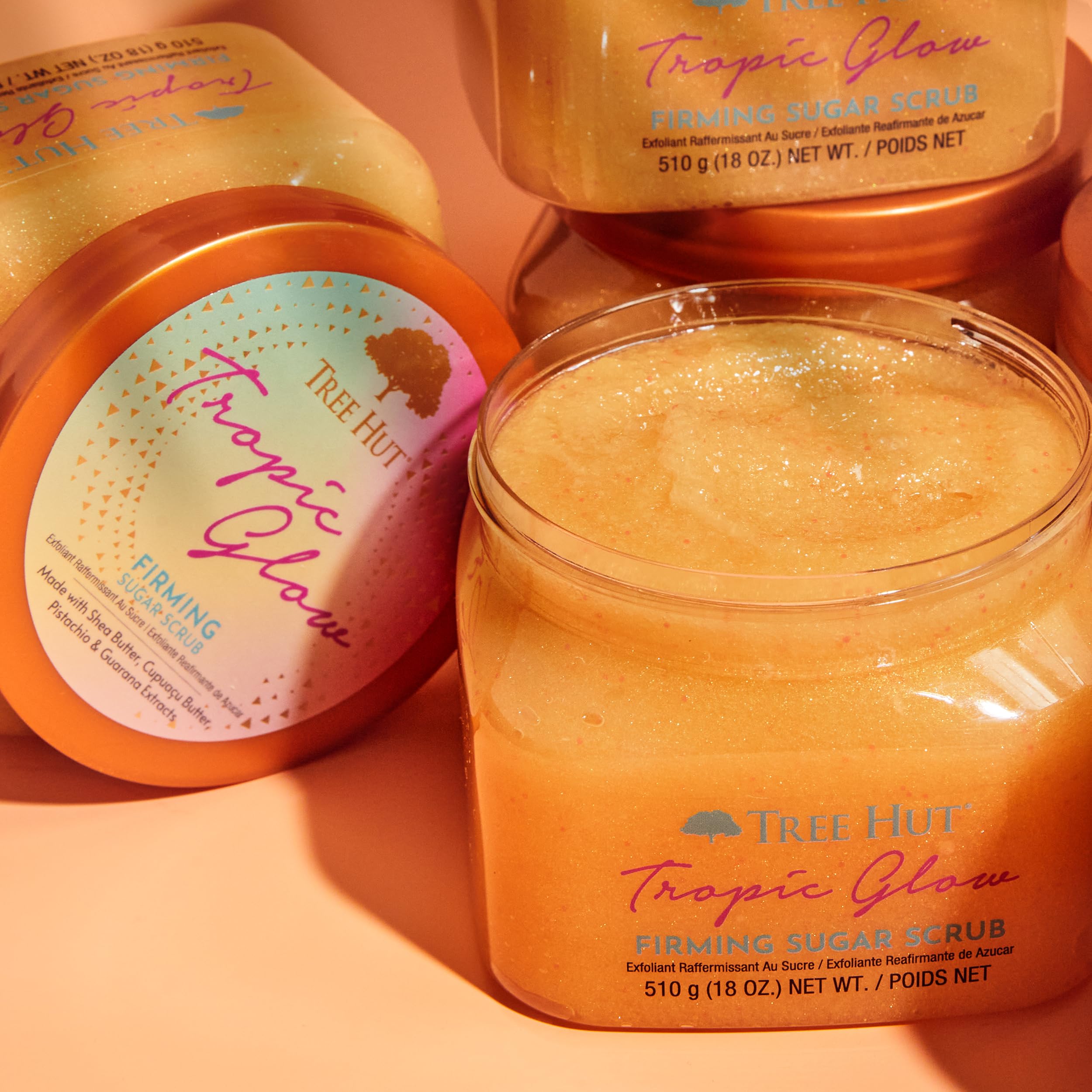 Reveal skin that feels as good as it looks with Tree Hut Tropic Glow Shea Sugar Scrub. Infused with the signature Tropic Glow scent—an irresistible blend of almond, golden amber, and sandalwood—this exfoliating body scrub turns your shower into a warm, sunlit escape. The formula combines sugar, a natural exfoliant, with moisturizing shea butter and Cupuaçu Butter to polish away dull, dry skin and support a soft, radiant finish. Guarana Extract helps promote smoother-looking skin, while a luxurious 6-oil blend—featuring avocado, macadamia, sweet almond, evening primrose, safflower, and orange oils—delivers lasting hydration and nourishment. Use in the shower or bath to buff, smooth, and refresh your skin, then layer with Tropic Glow Body Butter or Shimmer Mist for a complete scent experience. It’s more than a scrub—it’s your glow routine.
