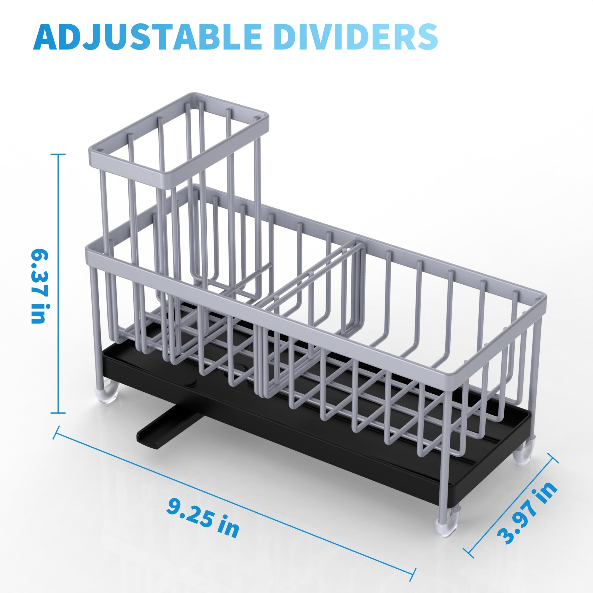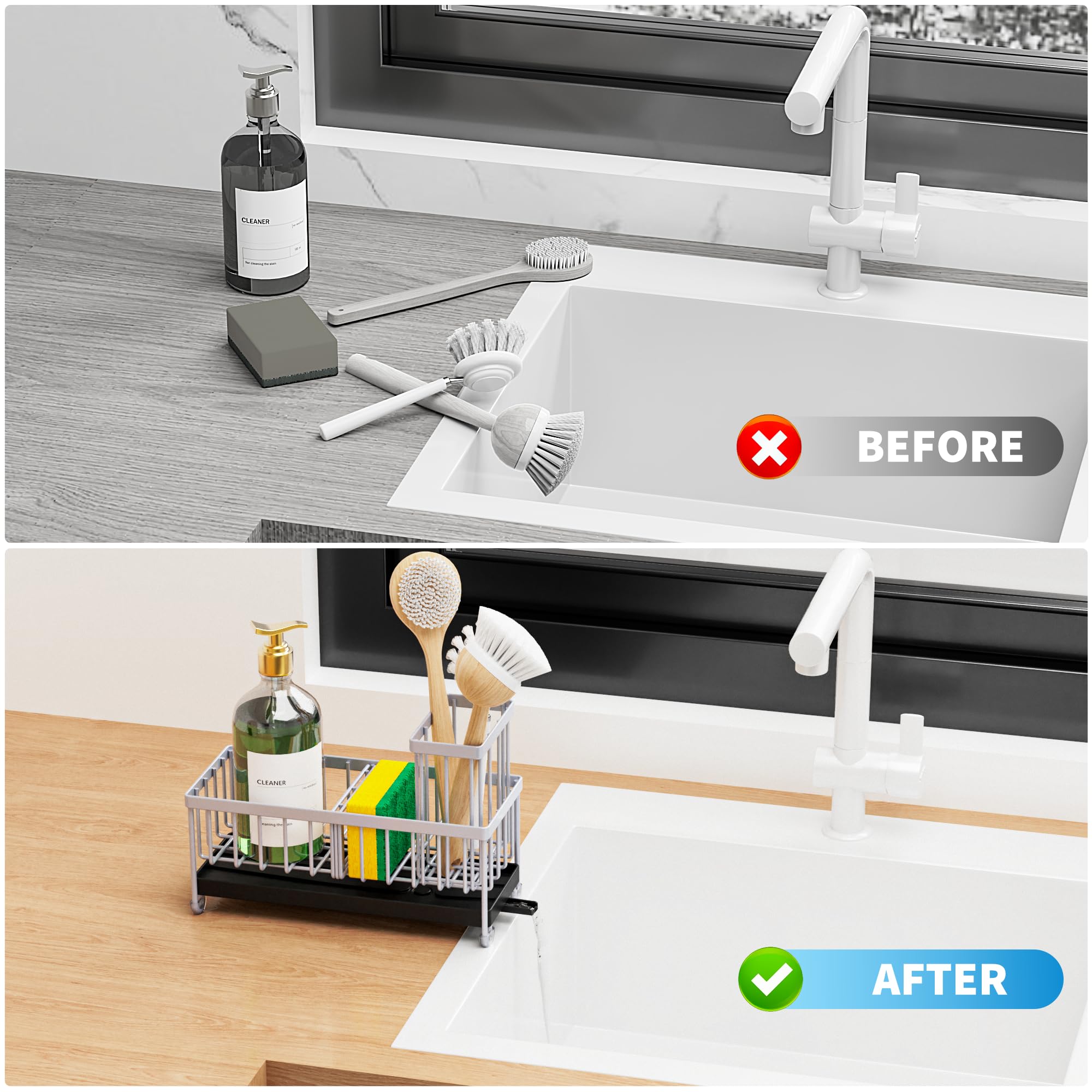 Cisily Dark Grey Sponge Holder for Kitchen Sink, Sink Caddy Organizer with High Brush Holder, Kitchen Countertop Organizers and Storage Essentials, Rustproof 304 Stainless Steel, Soap Dispenser Organize