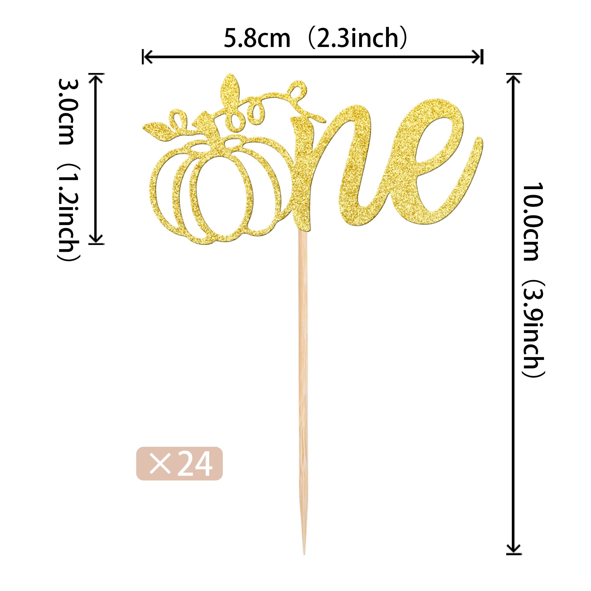 Pumpkin One Fall Theme Baby Shower Kids Boys Girls 1st Birthday Party Cupcake Decorations Supplies Perfect for 1st birthday theme party,fall theme party,pumpkin theme party,baby shower theme party cupcake decorations supplies. Pack of 24 pcs. The size is 2.3 *3.9 inch ( with stick ) Made of high quality paper card stock and food grade sticks,thick and sturdy. These cupcake toppers are single glitter, the back is white, and they are intended for decoration only, please do not put them in oven or microwave. If the item you received has any defects, please contact us for refund.we will deal with it within 24 hours.