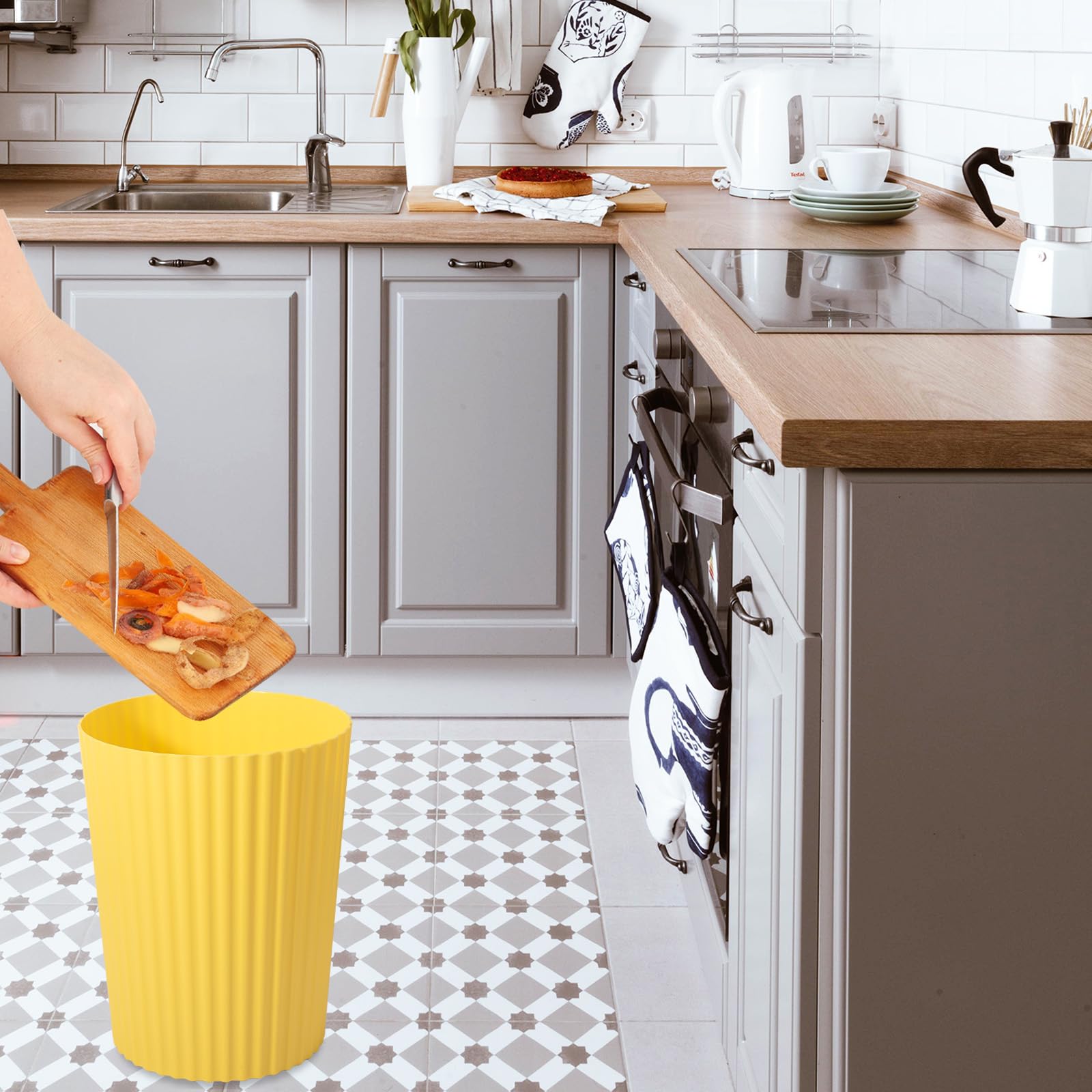 JiatuA Small Trash Can Plastic Wastebasket Round Garbage Container Bin for Bathroom, Kitchen, Bedroom, Home Office, College Dorm, Yellow