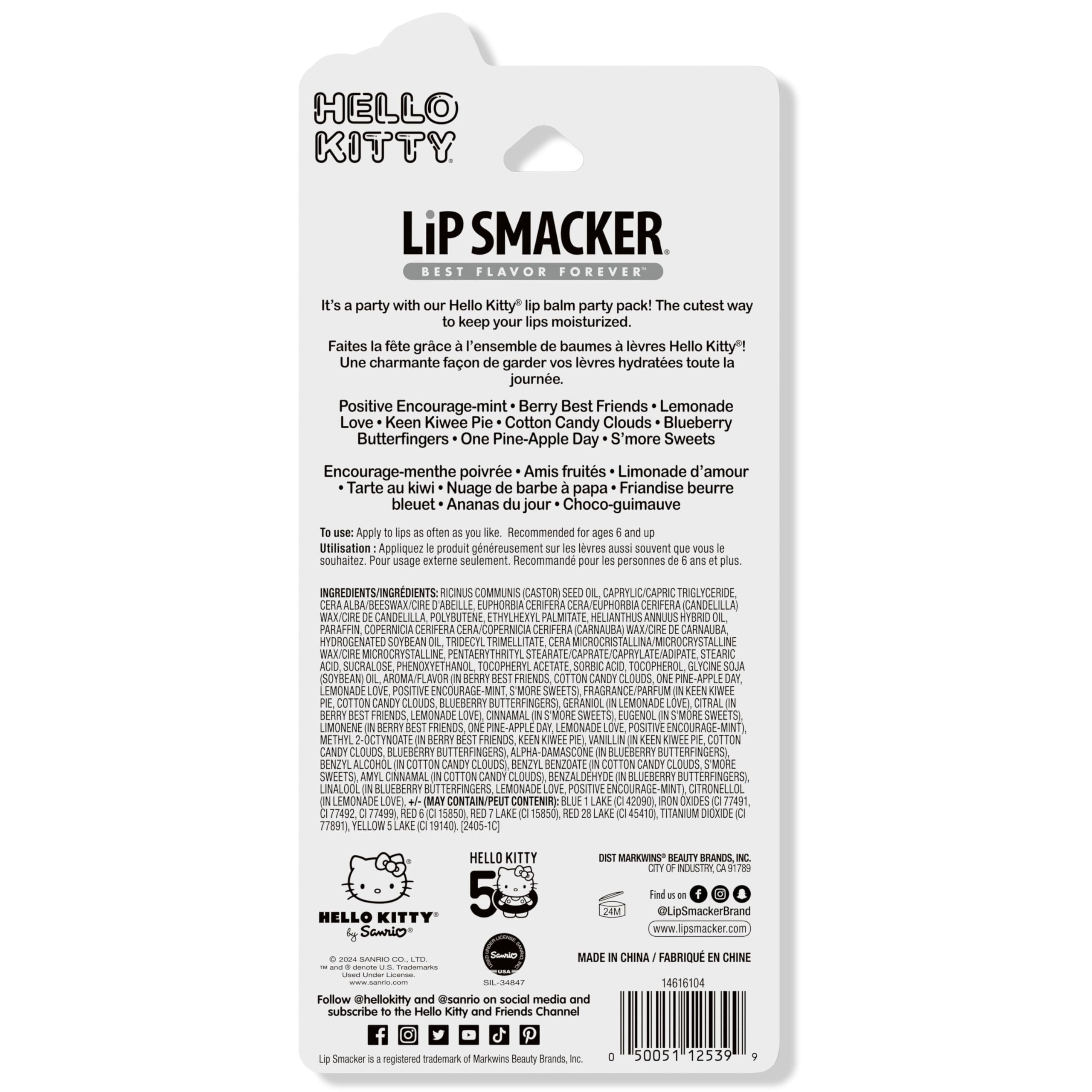 It's Hello Kitty's 50th anniversary and we are celebrating in a sweet way with our limited edition 8-piece lip balm party pack! Full of sweet delicious flavors and moisturizing nutrients, this lip balm set is the cutest way to celebrate the beloved Sanrio character! Welcome to the World of Lip Smacker: Explore flavor, color, and design and find the Lip Smacker that makes YOU smile. Since 1973, we have put smiles on lips around the globe. We hope our authentic flavors, scents, and colorfully designed products make you happy. We invite you to discover Our World, explore our brand, and find your favorites. The flavor combinations are endless — mix and match to find your own lip softening, smile inducing, deliriously delicious happy moment. Then repeat, repeat, repeat!