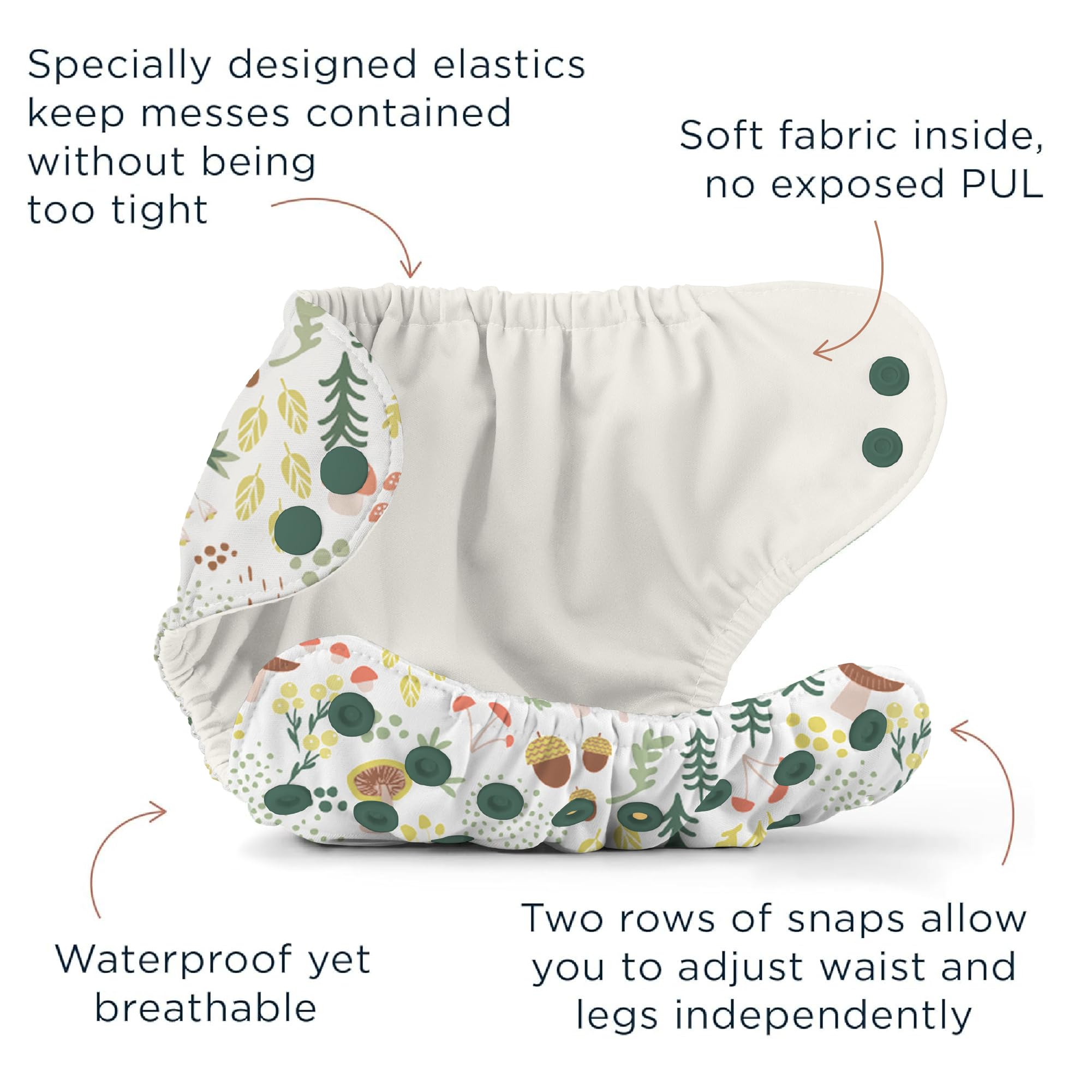 Grows With Your Little One: Trim-fitting and available in two sizes—Size 1 (7-17 lbs) and Size 2 (18-35 lbs)—with adjustable snaps that let you customize the fit at the waist and legs. We recommend building your stash with 24-30 Inners and 6-8 Outers for full-time diapering.