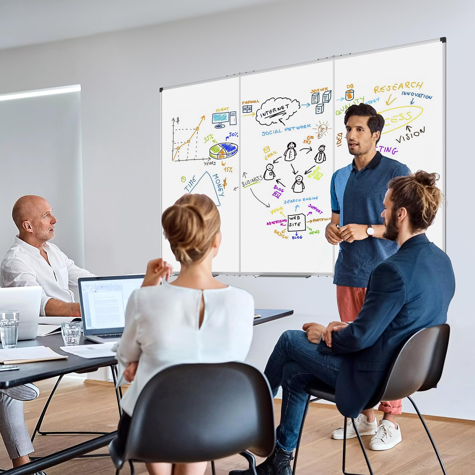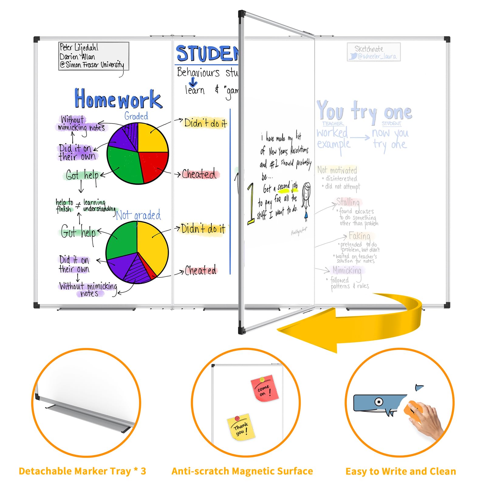 【Multiple Uses & Installation Ways】Flexible installation with fixing kits, perfect for office meetings, school teaching and home presentations, dual as a bulletin board by using magnets to pin notes, messages, pictures, calendars and more.