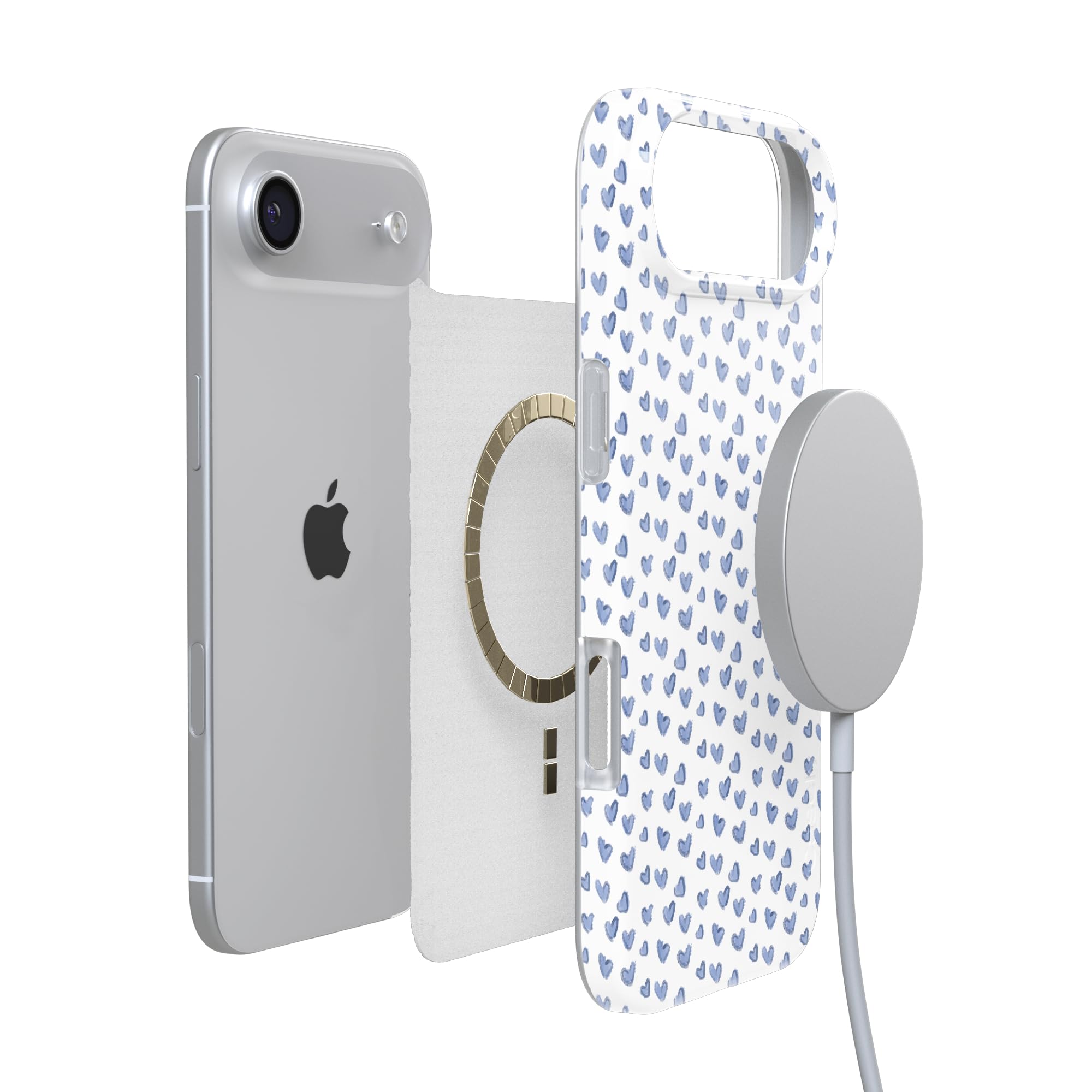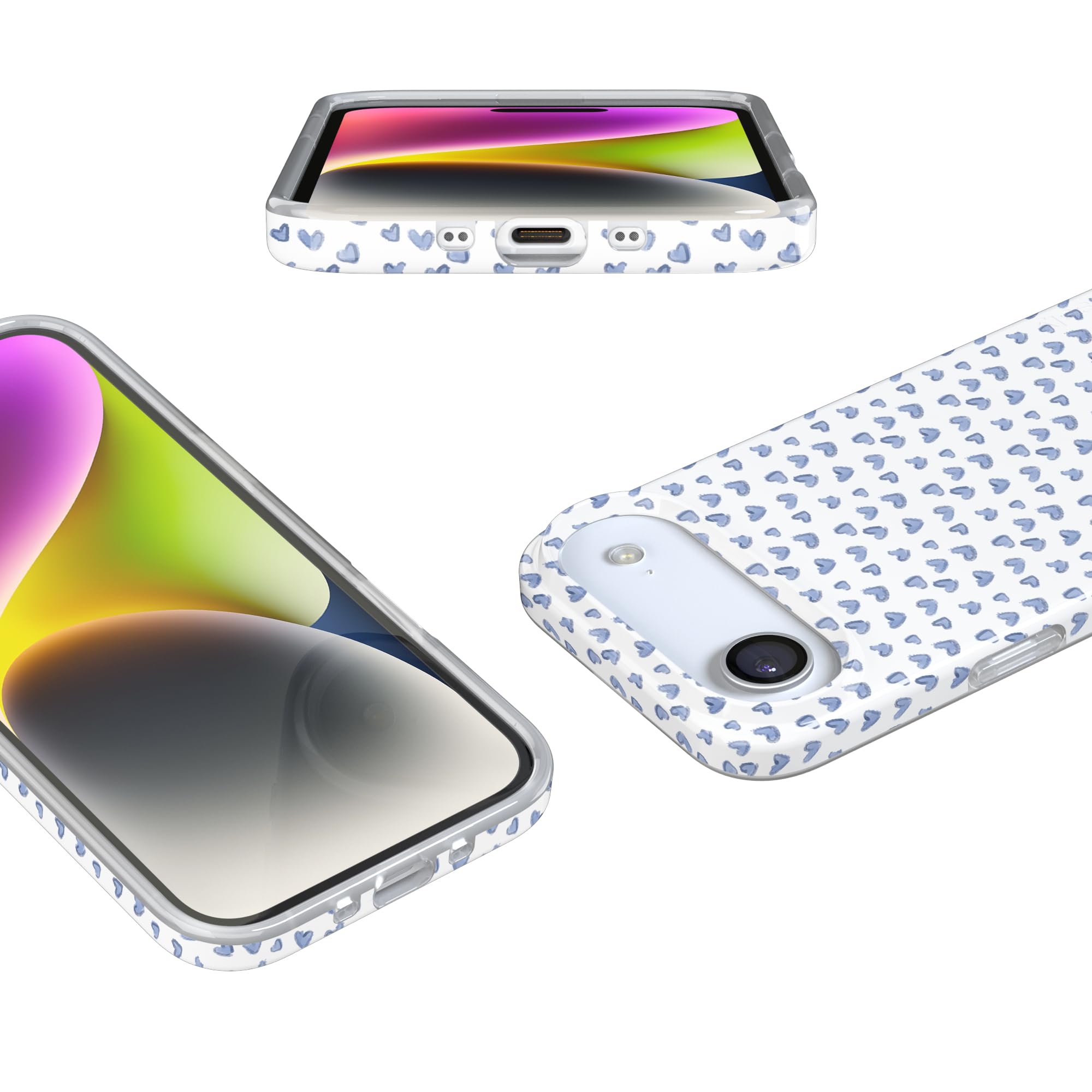 Let your phone steal hearts with the adorable Lovebug | Blue Hearts Case . Featuring a charming pattern of soft blue hearts on a clean white background, this case brings a sweet and playful vibe to your everyday look. Designed to protect your phone while adding a touch of fun, this case is the perfect blend of style and function. Sweet & Protective : Show off your fun side with a case that protects your phone from daily wear and tear, including bumps, scratches, and drops. Slim Profile : Lightweight and slim, this case keeps your phone sleek and easy to hold without compromising on protection. Perfect for Everyday Use : Whether you’re heading out or staying in, the Lovebug case is your go-to accessory for adding a pop of personality to your phone. Compatibility : Available for a variety of iPhone models to ensure a snug fit. Add a little love to your phone with the Lovebug | Blue Hearts Case . Cute, durable, and effortlessly stylish, this case is perfect for anyone who loves to stand out. Available in iPhone, Samsung & Google Pixel.